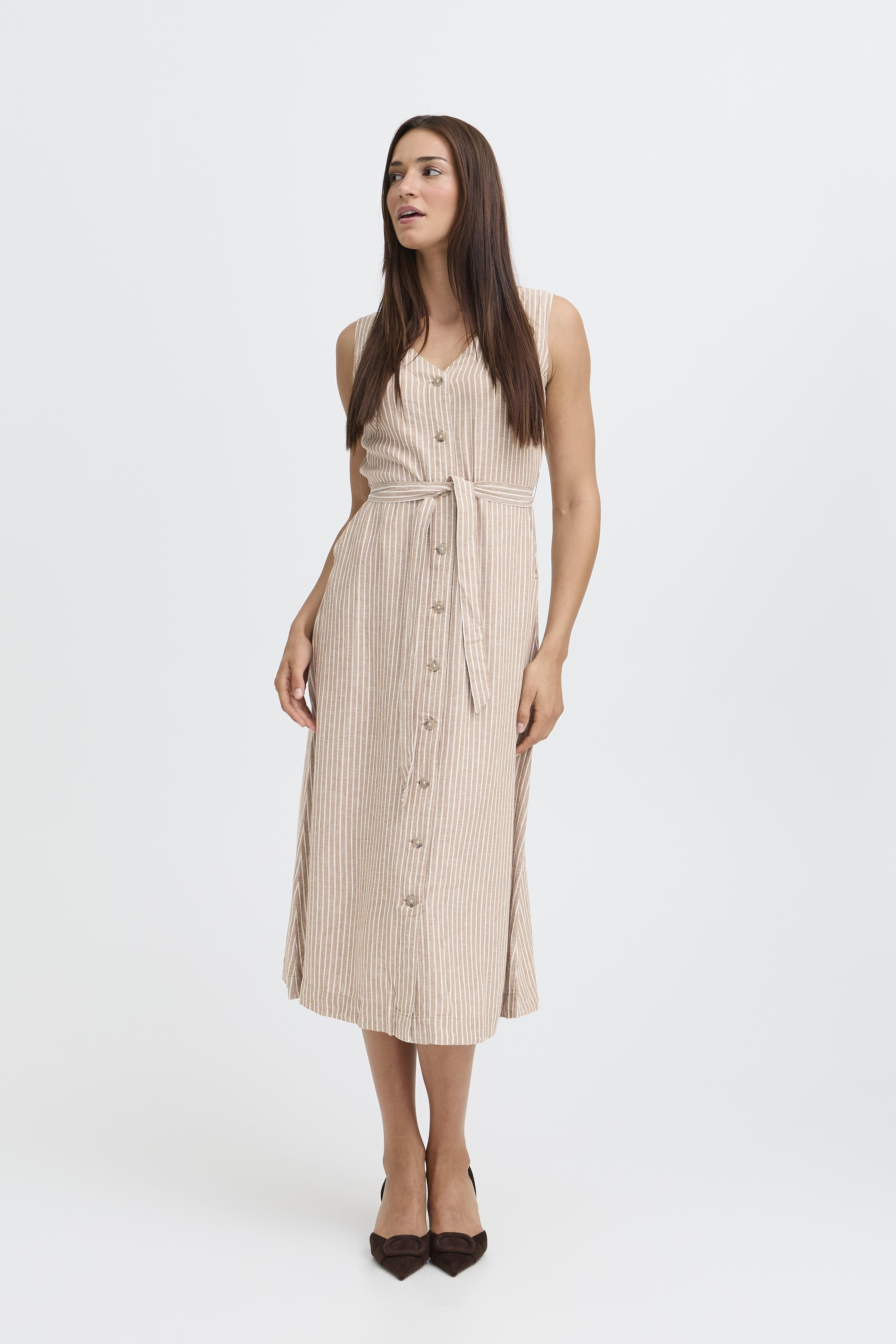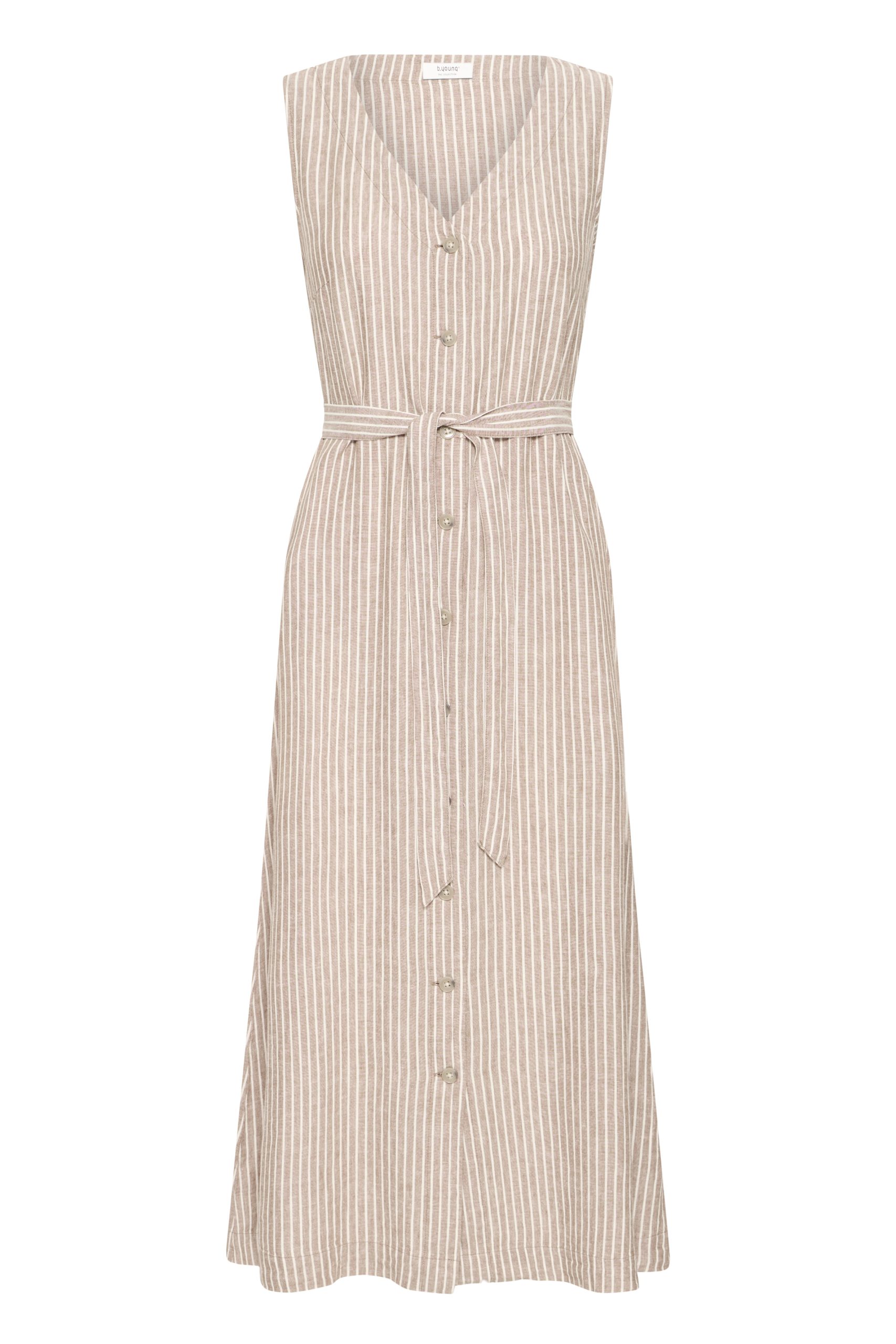 B.YOUNG – Woodsmoke Stripe Brown Falakka Button Dress