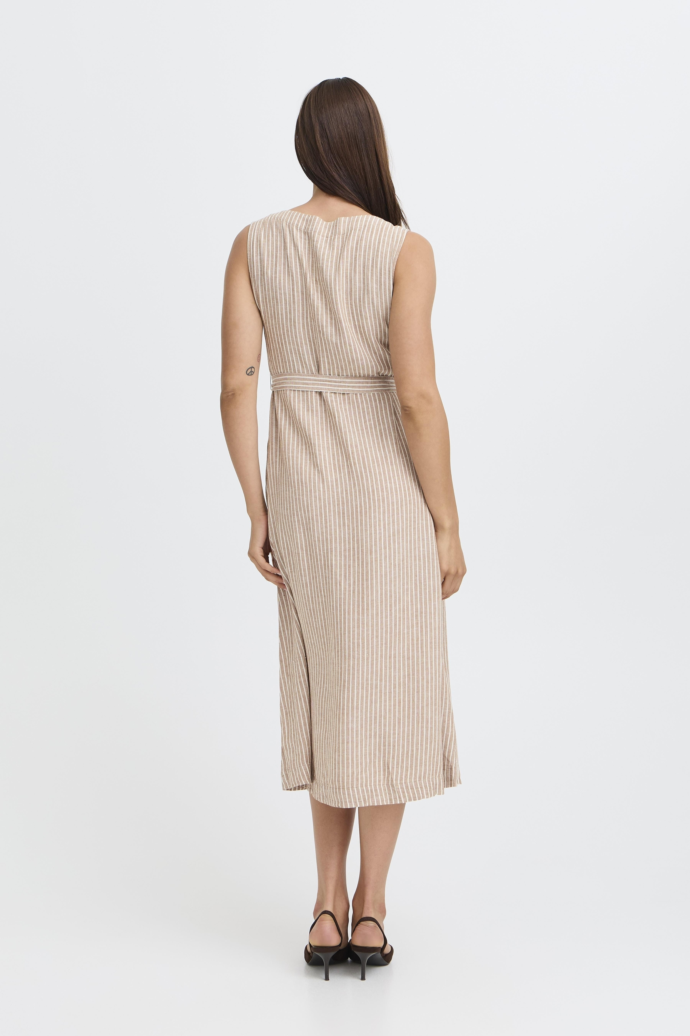 B.YOUNG - Woodsmoke Stripe Brown Falakka Button Dress