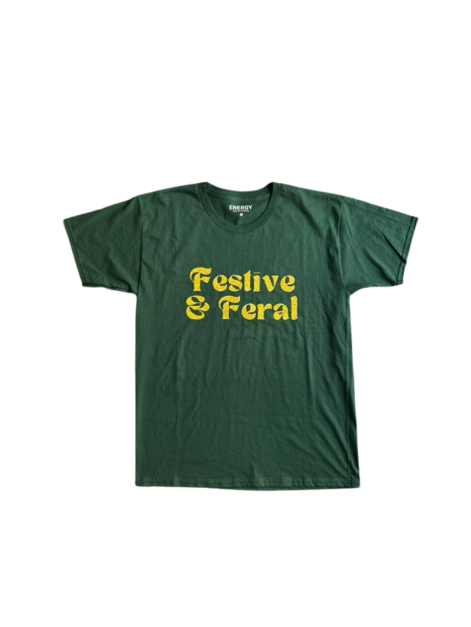 ENERGY – Green/ Gold Glitter ‘Festive & Feral’ Christmas T-Shirt