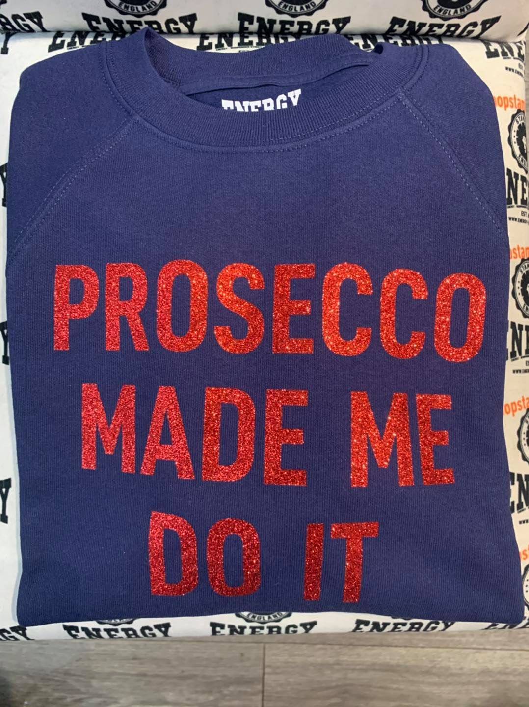 ENERGY – Navy/Red Glitter ‘Prosecco Made Me Do It’ Sweat