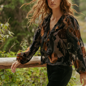 TRAFFIC PEOPLE – Black Burnout Frill Blouse