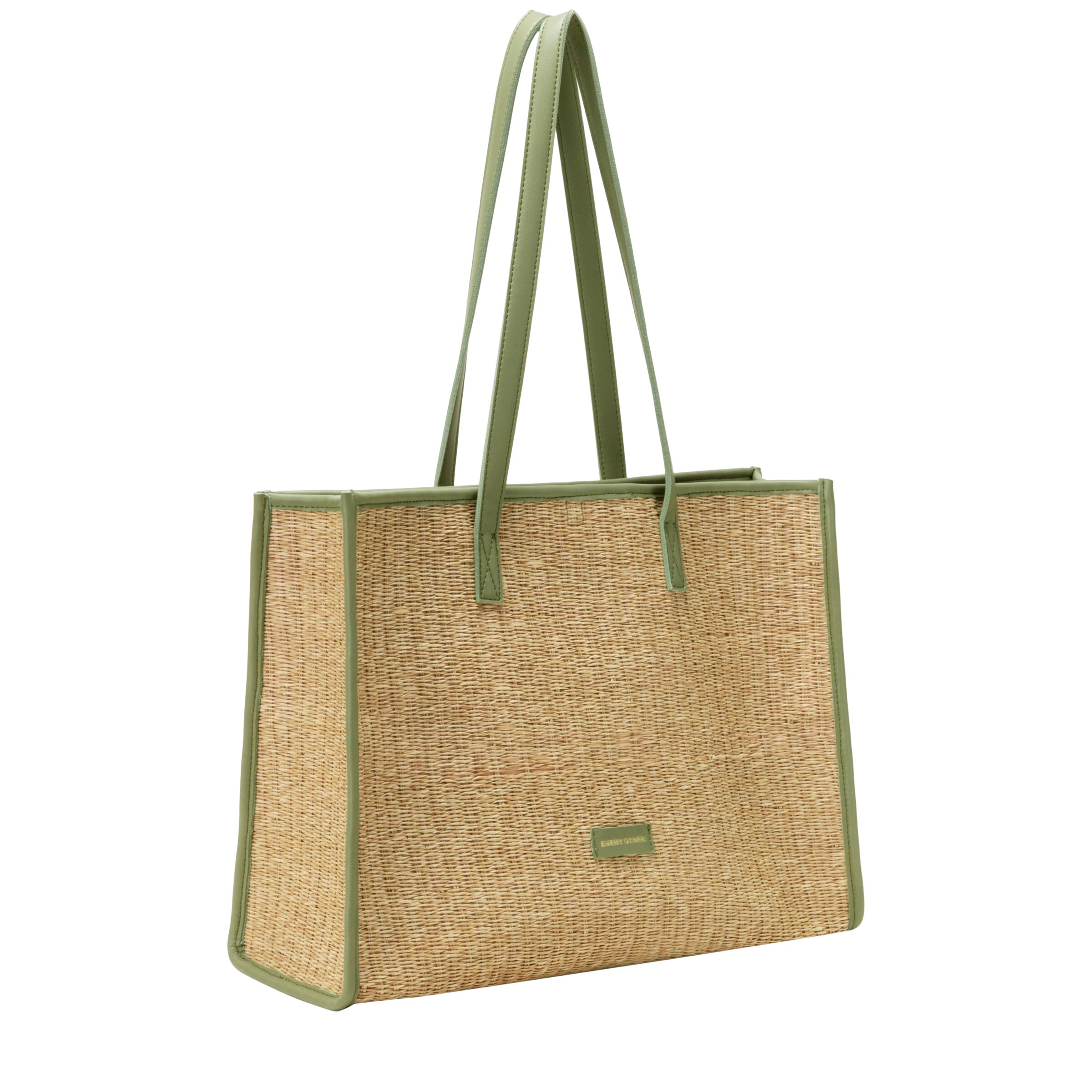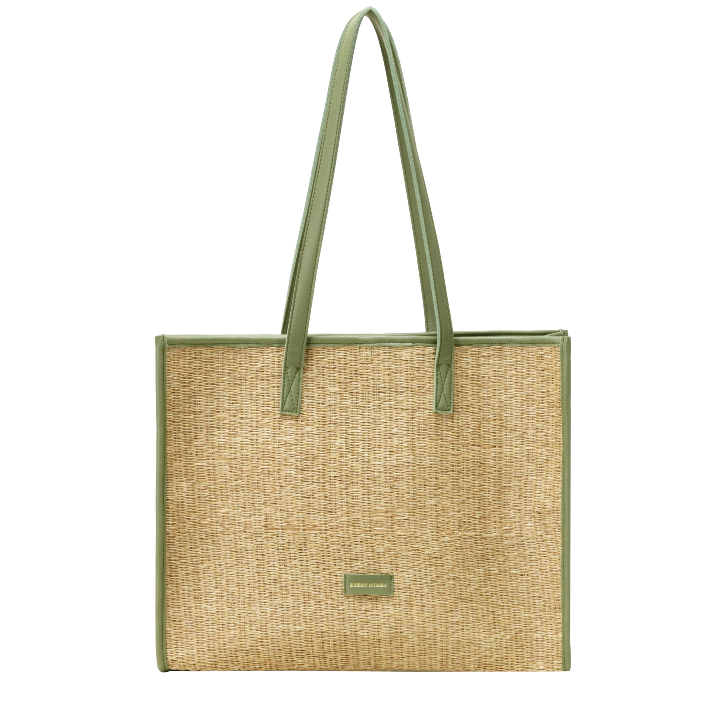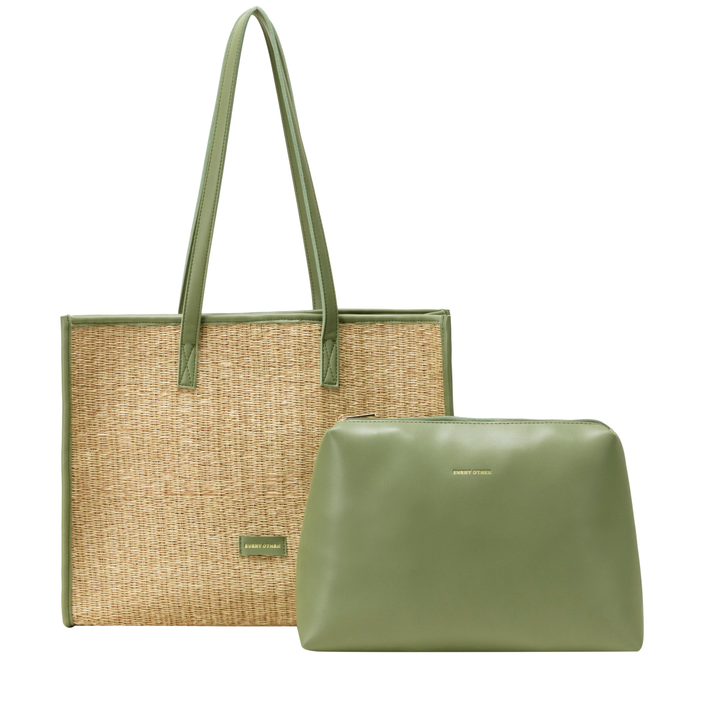 EVERY OTHER - Olive Straw Box Tote Bag quantity