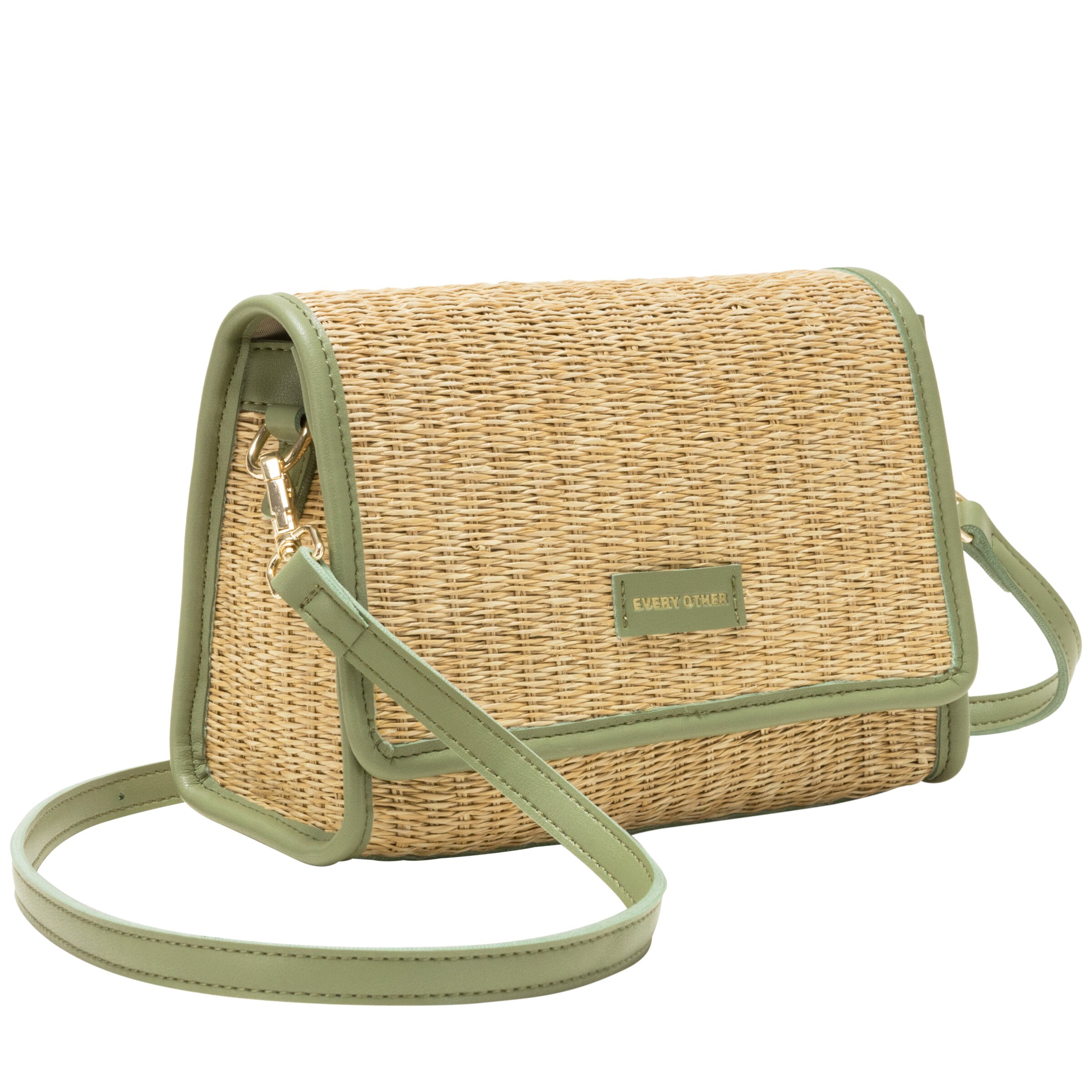 EVERY OTHER – Olive Straw Flap Over Cross Body Bag