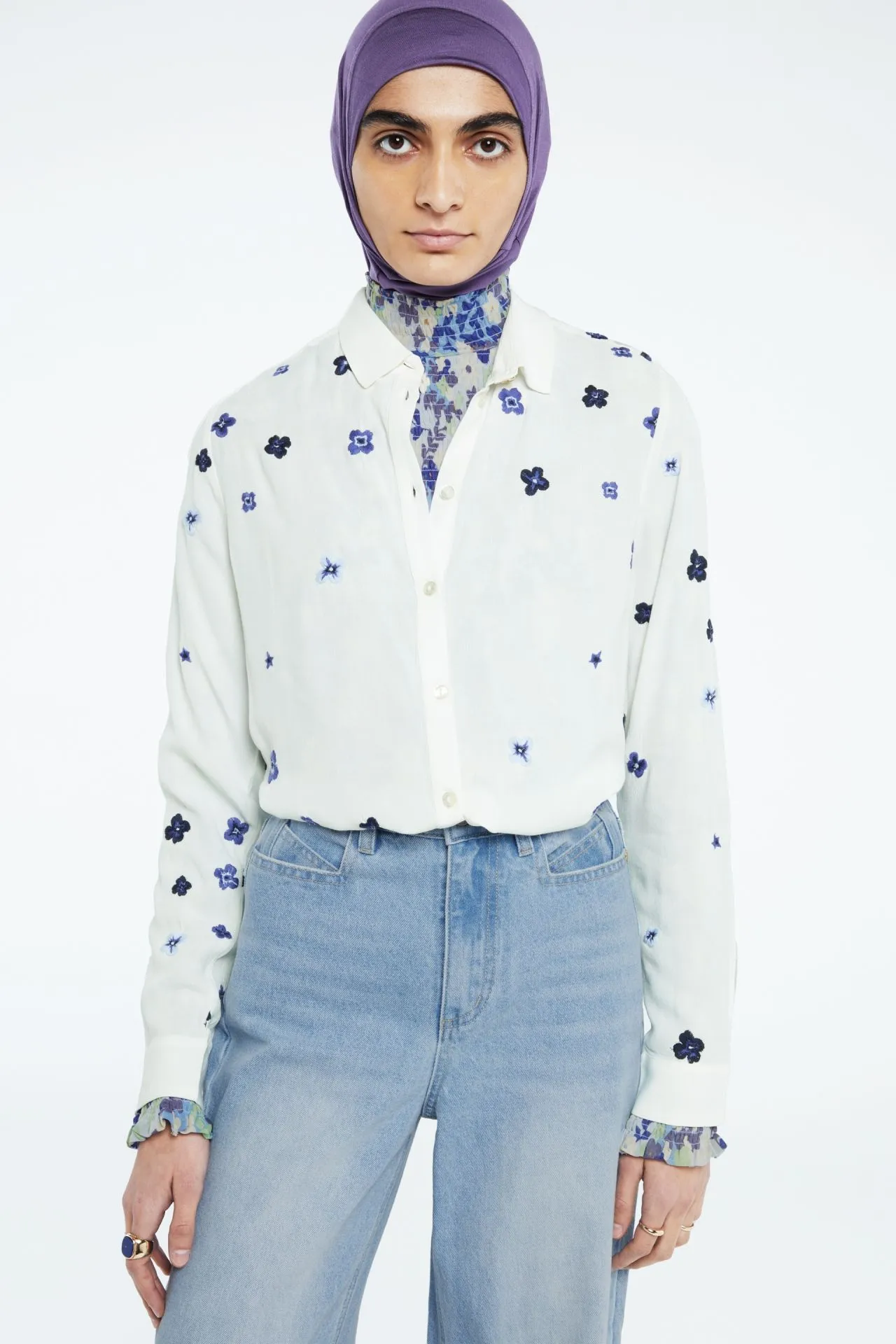 FABIENNE CHAPOT – Cream White/Navy Flower Embro Sophia Blouse