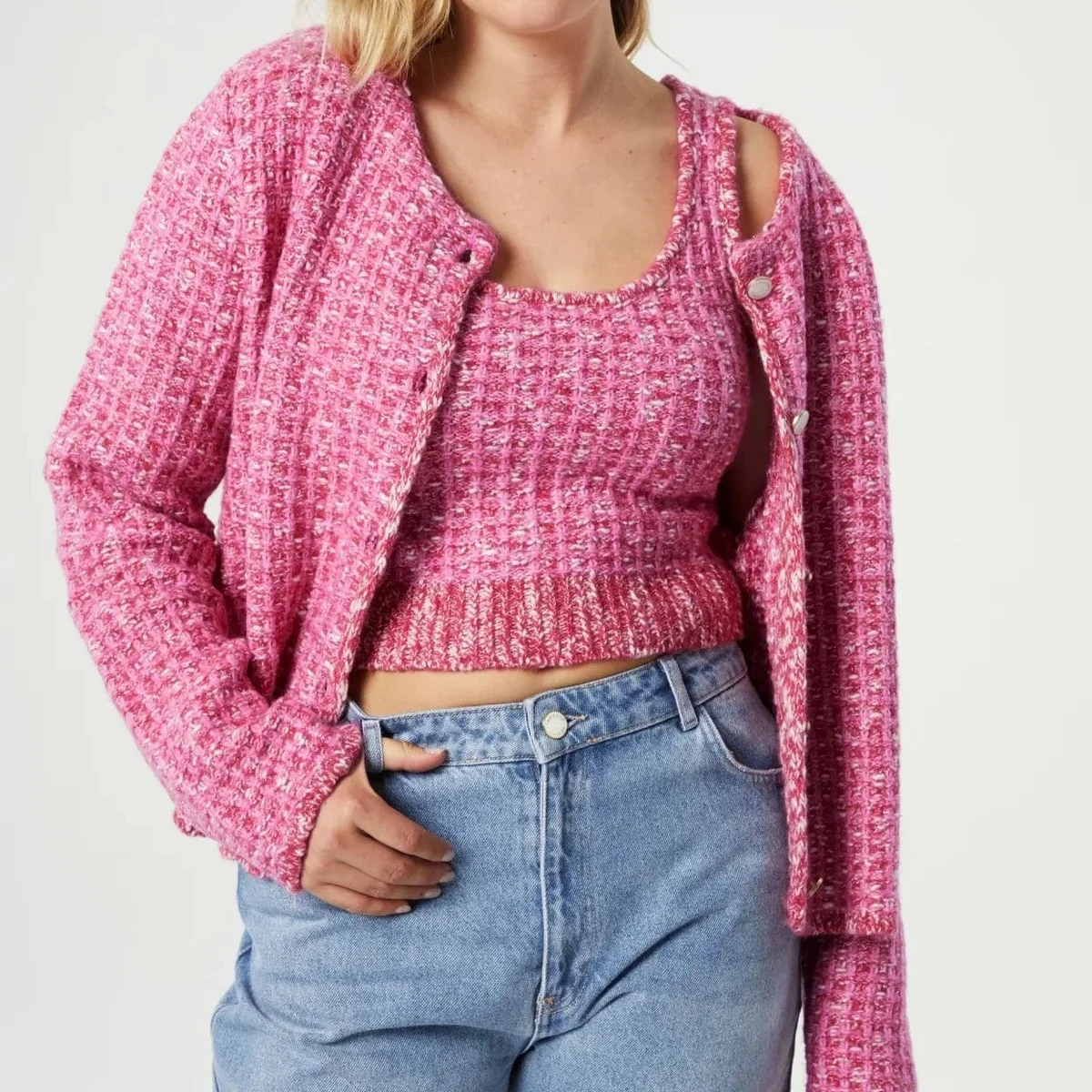 SKU: FABIENNE CHAPOT - Pink Candy Josh Tweed Cardigan Categories: , , , ,