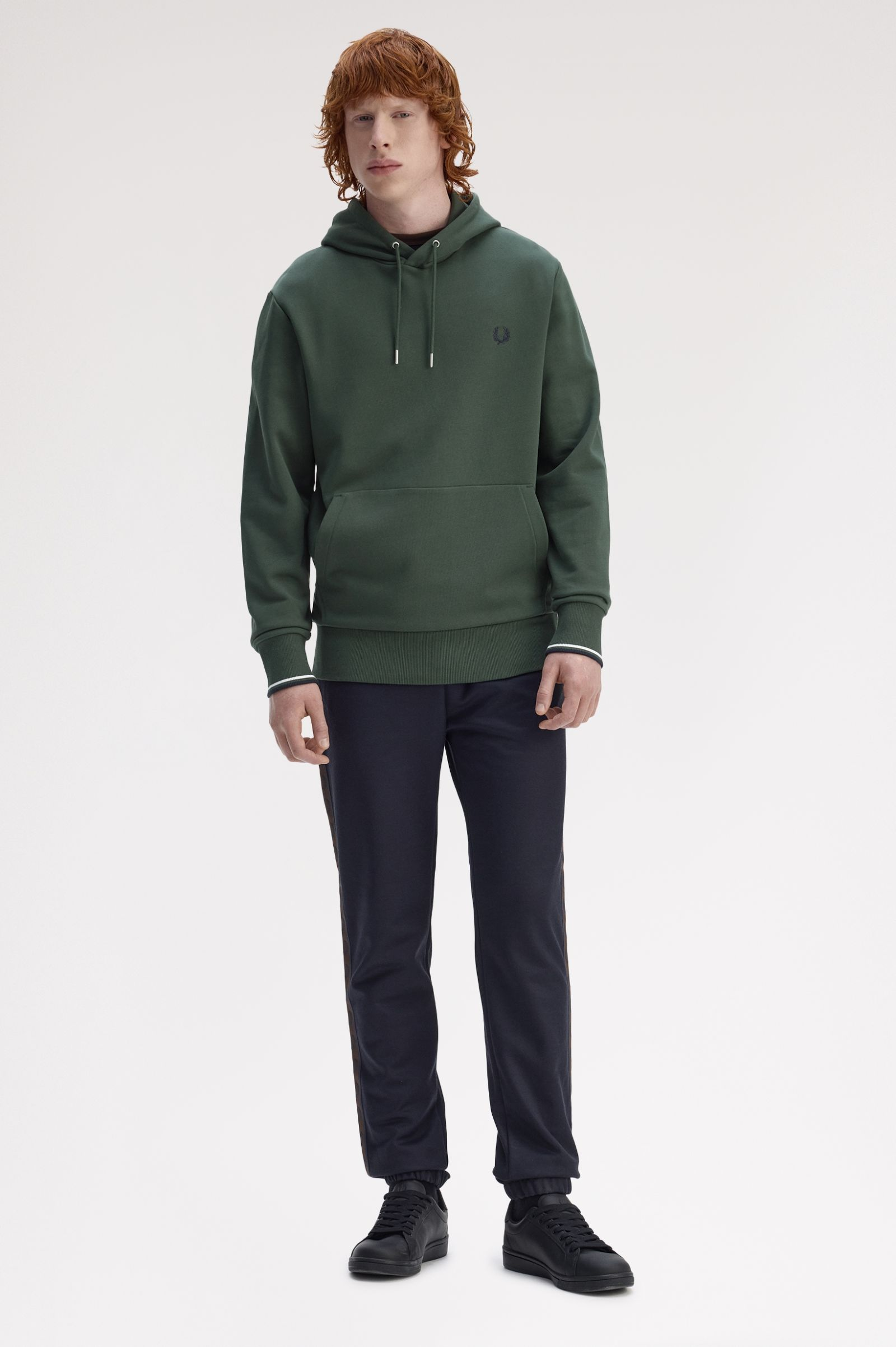 Fred Perry’s hooded sweatshirt in cotton sweat fabric, trimmed with our signature twin tipping at the cuffs.