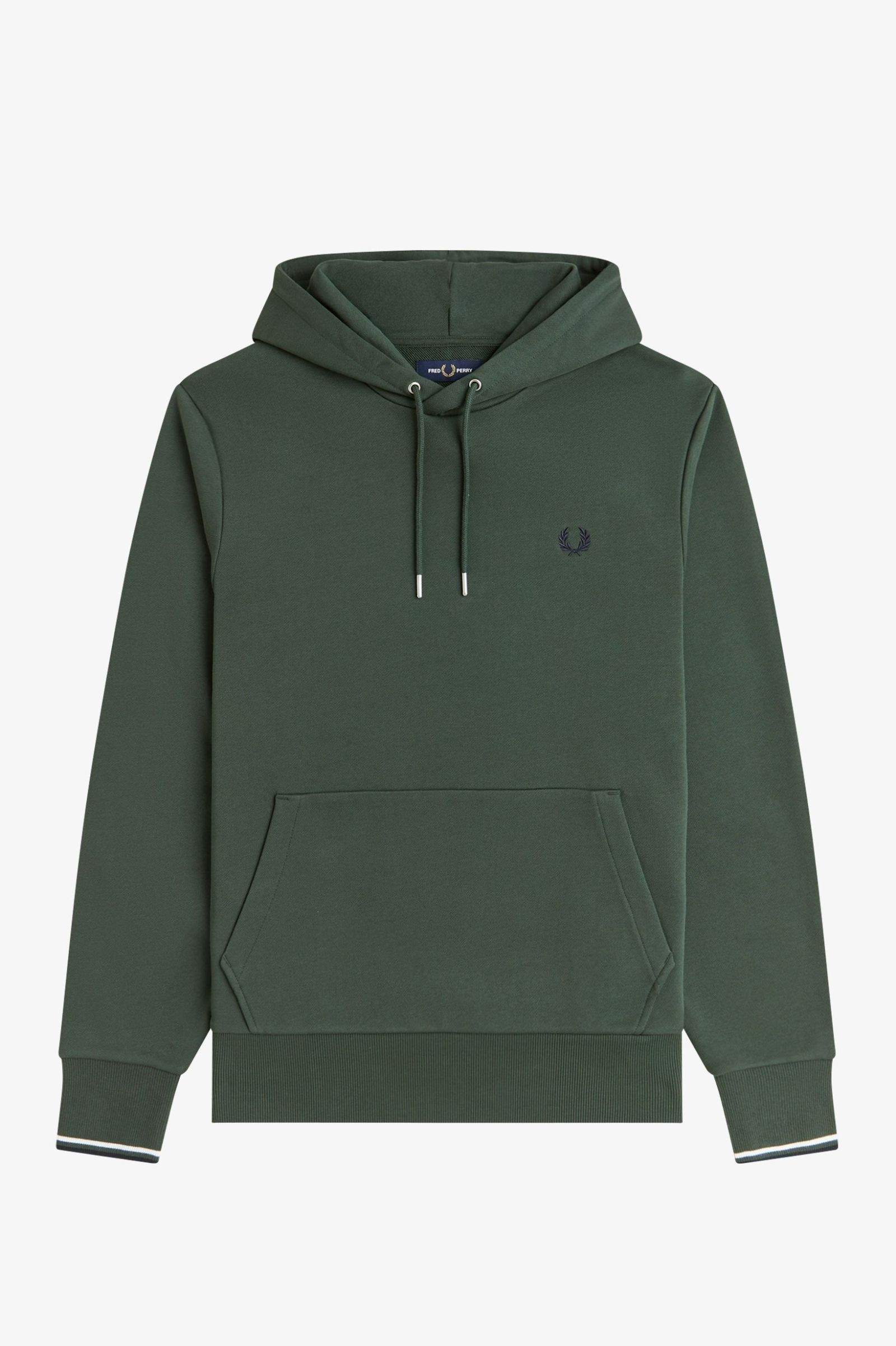 FRED PERRY – Court Green / Snow White / Navy Tipped Hooded Sweatshirt