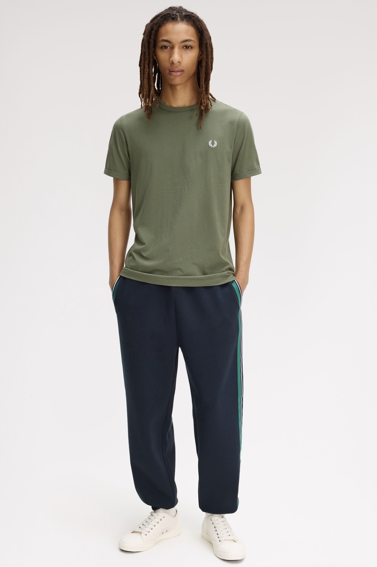 FRED PERRY – Laurel Wreath Green Ringer T-Shirt.
