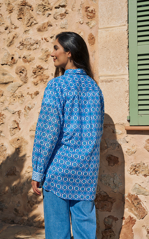 LUELLA – Blue Printed Pattern Cotton Dieppe Shirt.