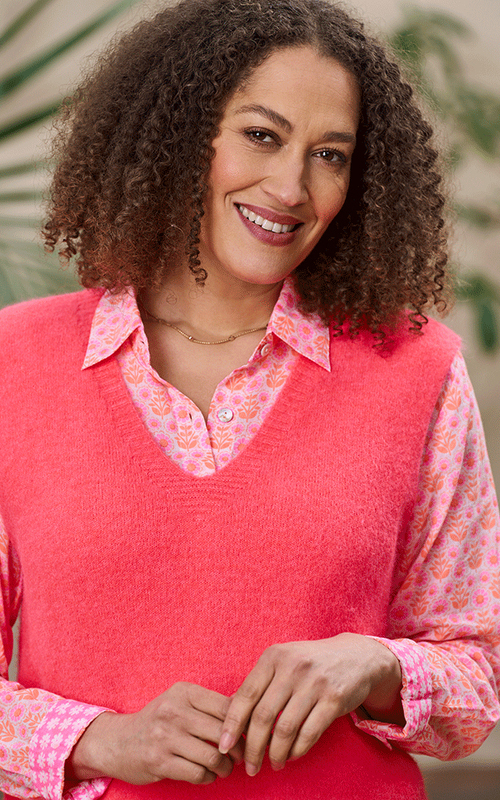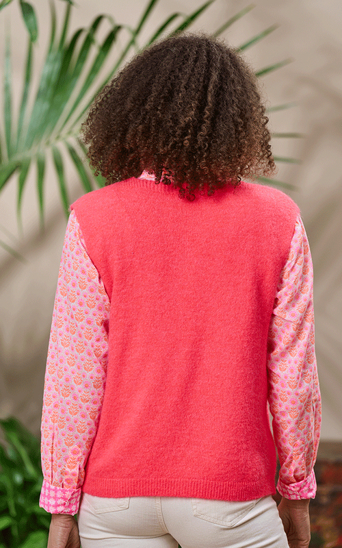 The Tallulah Alpaca Knit V-Neck Tank Top in vibrant coral is a striking addition to your wardrobe. Crafted from soft alpaca yarn, this sleeveless design offers a flattering V-neckline and a relaxed fit, making it perfect for layering or wearing solo. Its rich colour and cosy texture add a touch of luxury to any look.