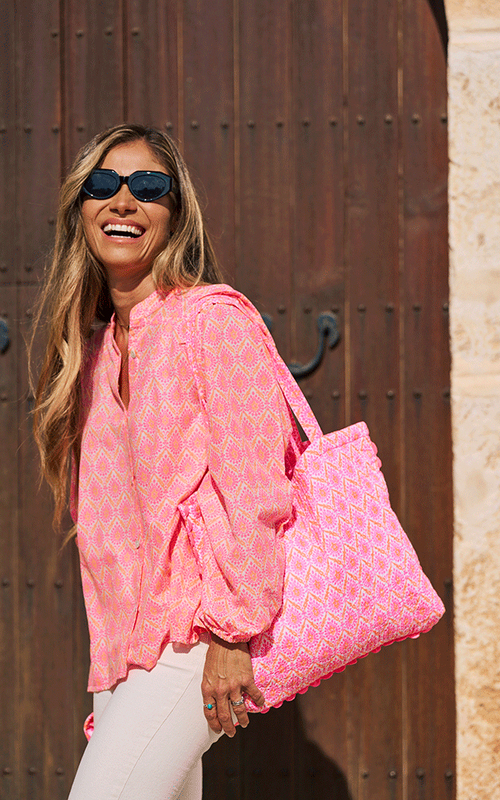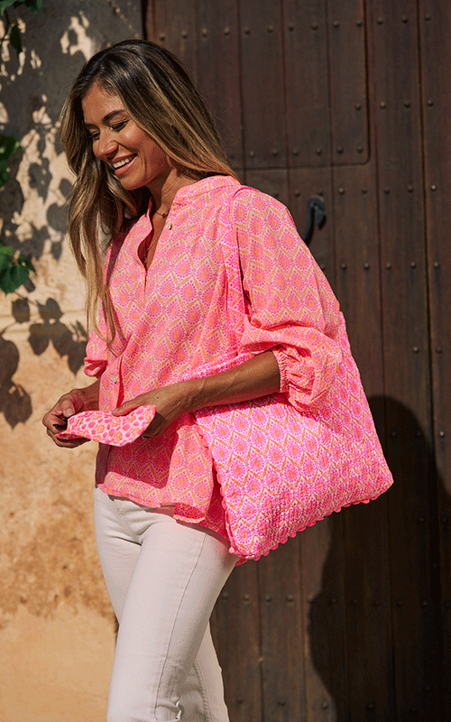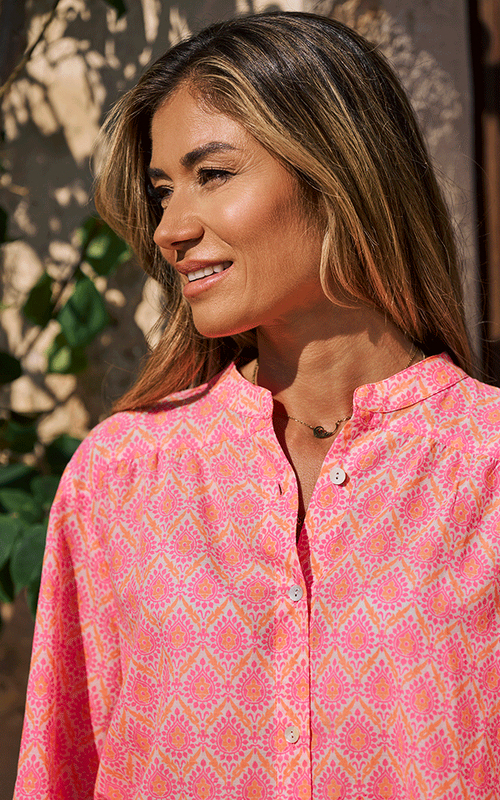LUELLA – Neon Pink/Orange Bergerac Blouse.