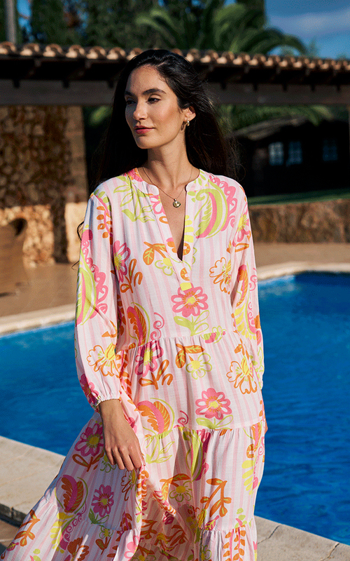 With its vibrant, unexpected colour palette, the Palermo Cotton Dress brings a fresh twist to summer style. Crafted in lightweight cotton with a relaxed silhouette and pockets, it’s designed for effortless comfort and impact.