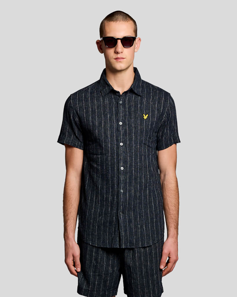 LYLE & SCOTT – Dark Navy Short Sleeve Ticking Stripe Shirt