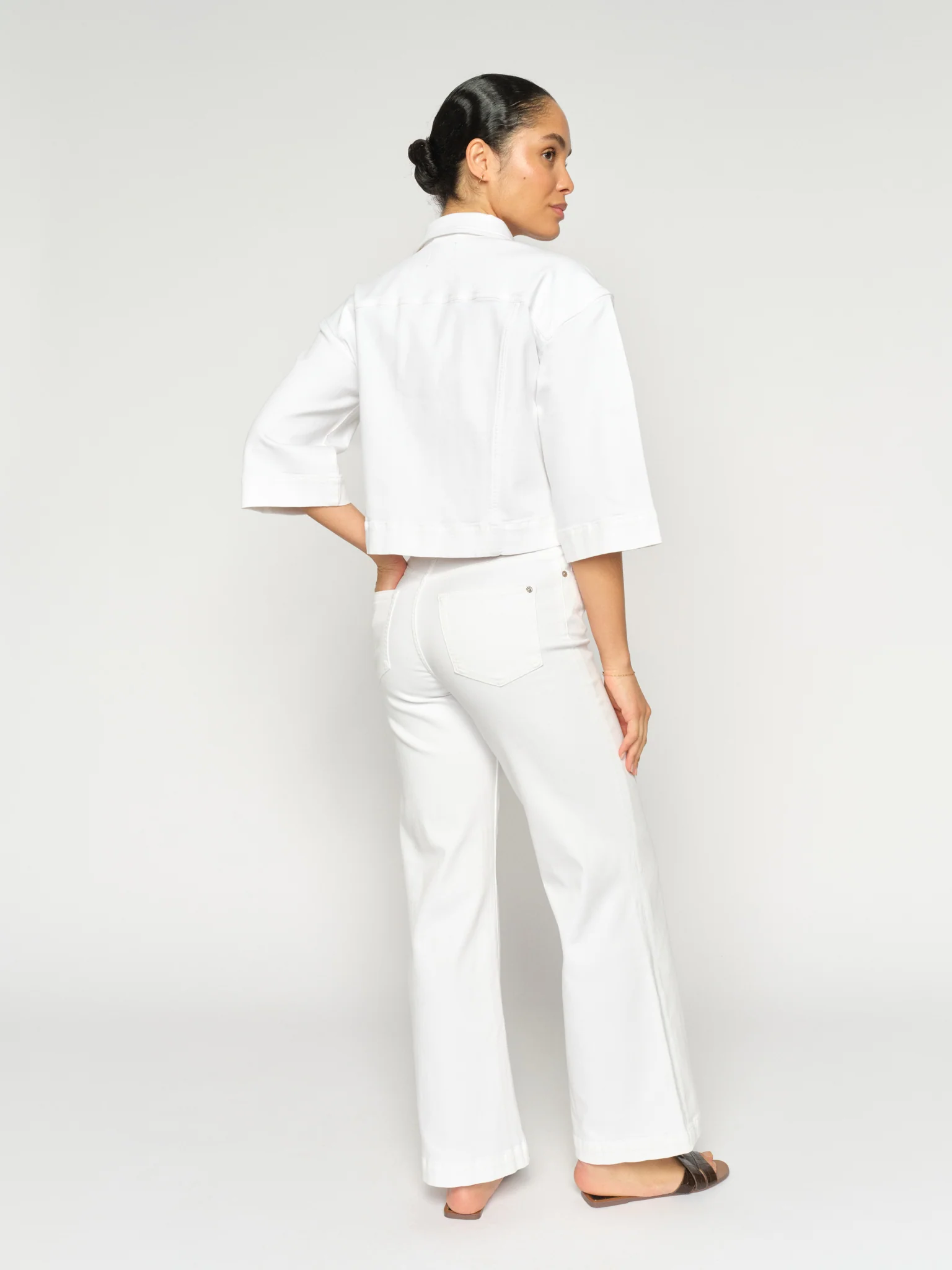 These wide-leg jeans blend a sleek silhouette with a polished, modern feel. Designed with a high waist and crafted from soft stretch denim, they balance comfort with structure. Style them with a crisp shirt or lightweight knit for effortless sophistication.