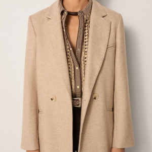 Crafted in a beige wool mix, the Resplendent coat is the ultimate winter fixture, with its tassels on back and sleeves made in Faux suede. The Hip length style features a chunky metal zip fastening, front pockets, an inside pocket and a collar and lapel. Add some fun to your winter wardrobe in this stunning piece. The coat has a regular fit. The model wears a size S.