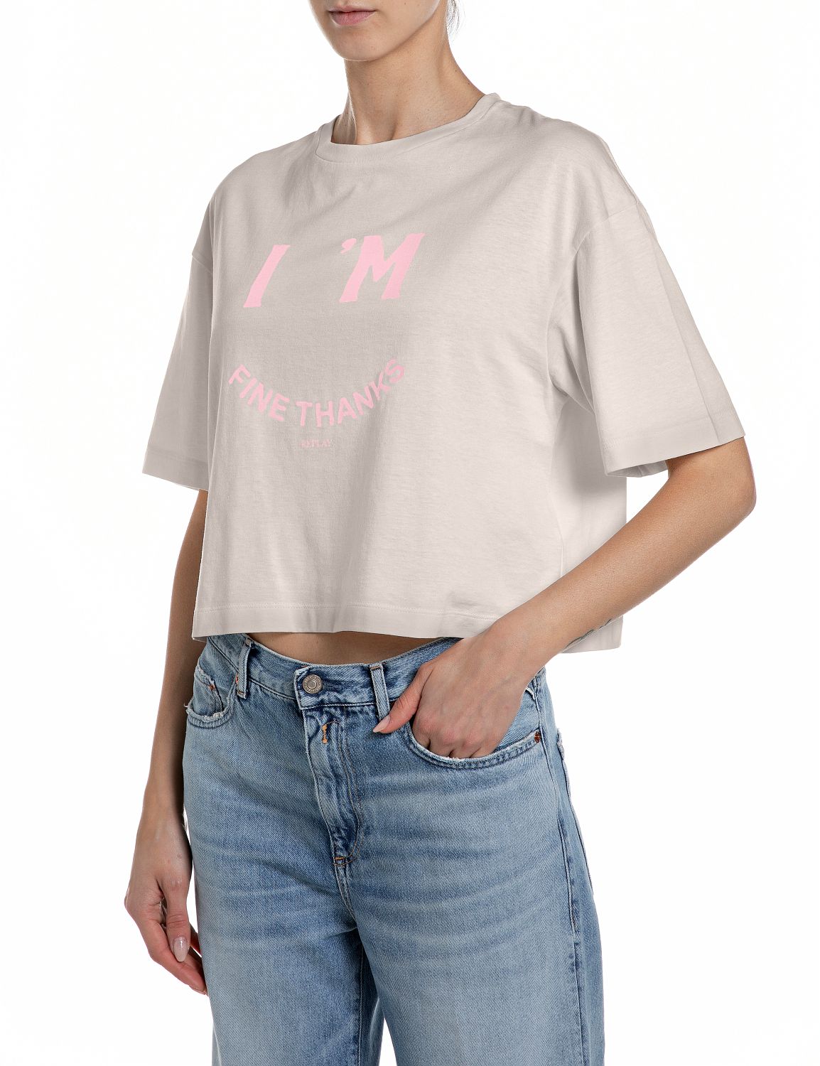 REPLAY – Beige/Pink ‘I’m Fine Thanks’ Boxy Tee.