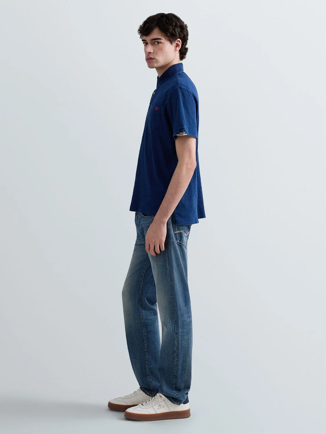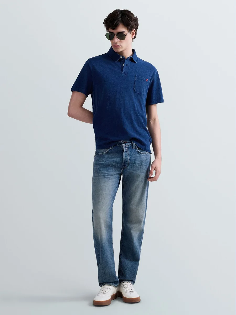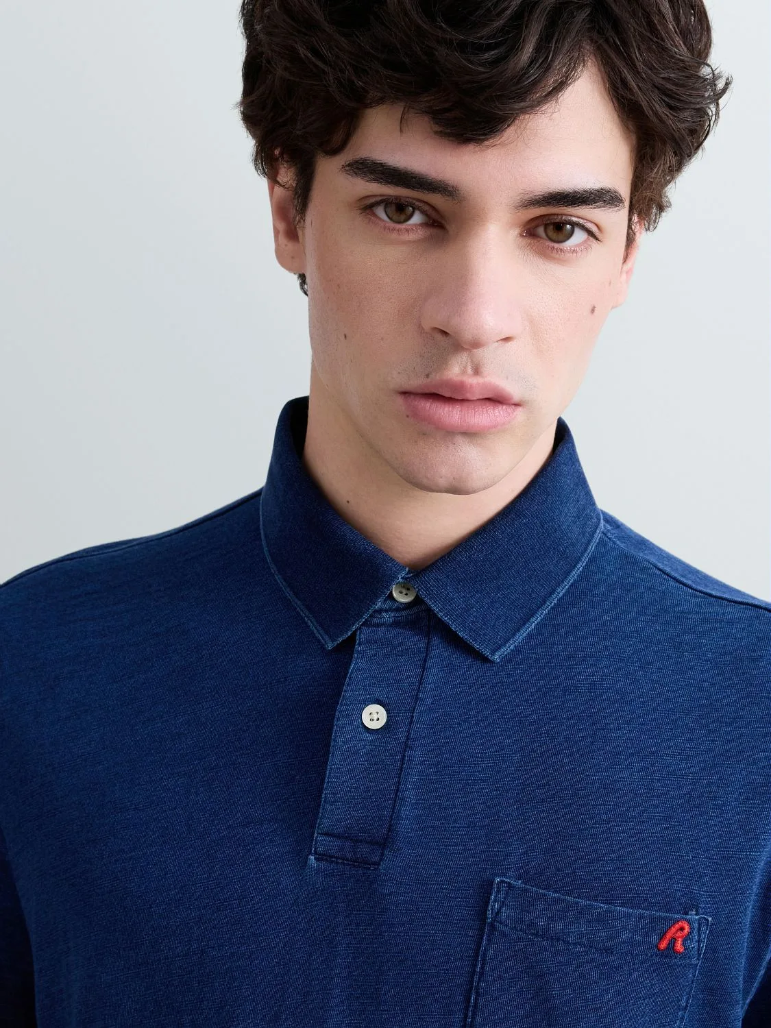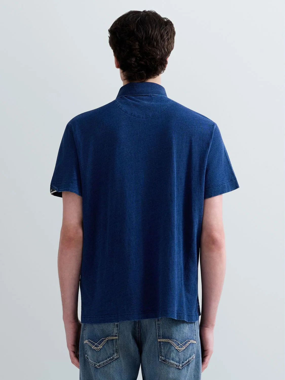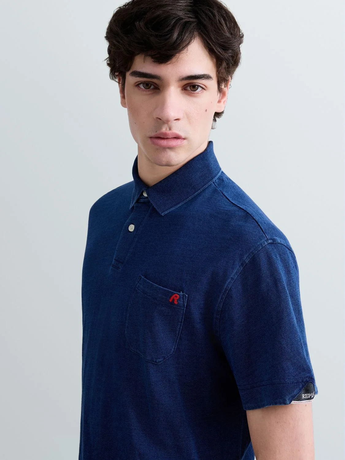 REPLAY – Medium Blue Denim-Look Jersey Polo-Shirt