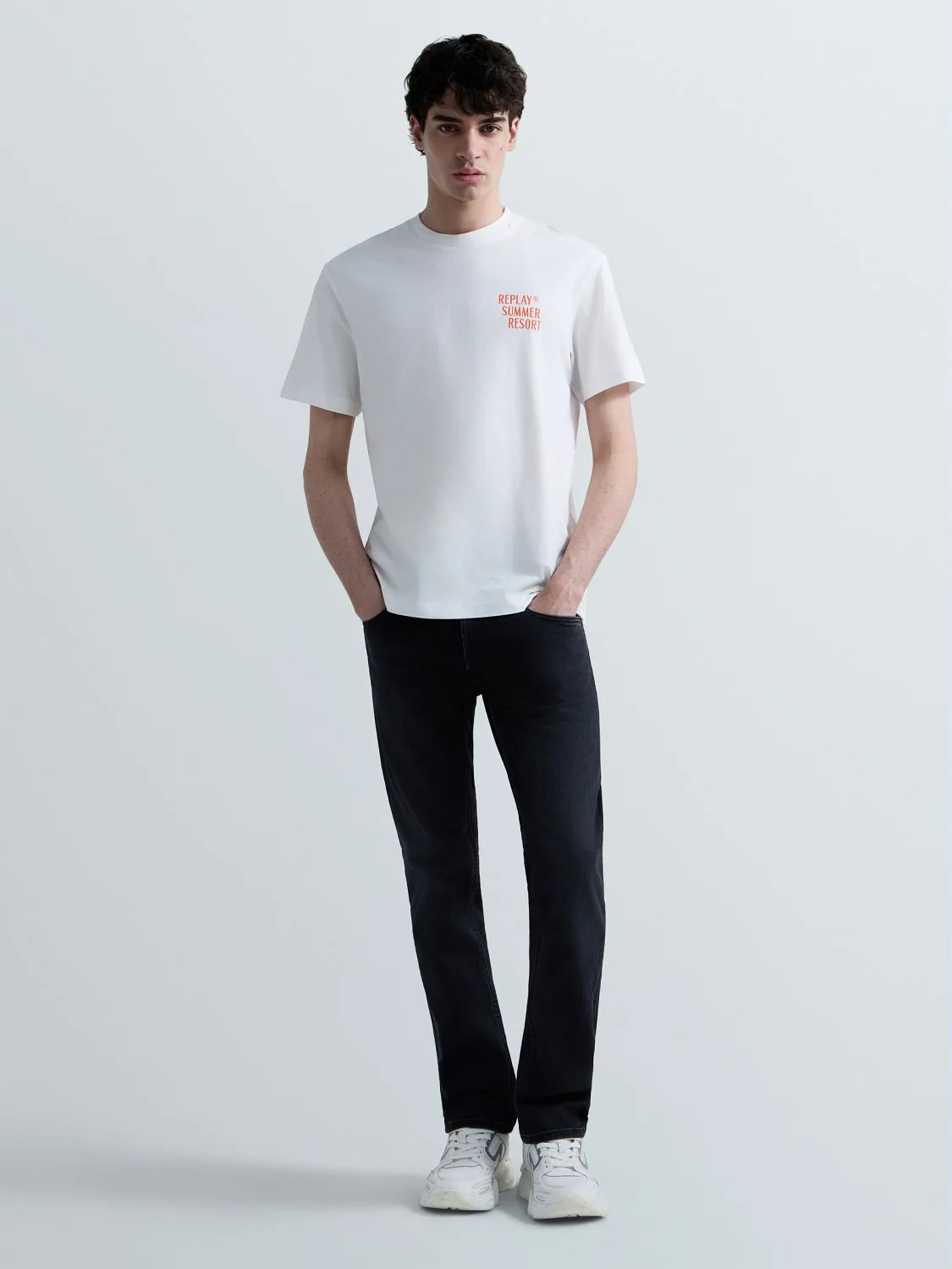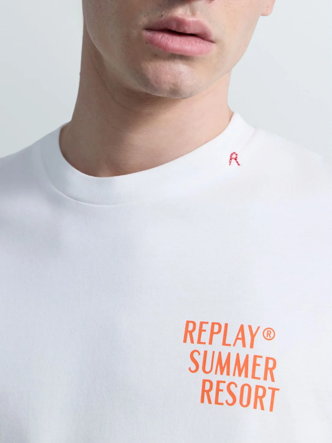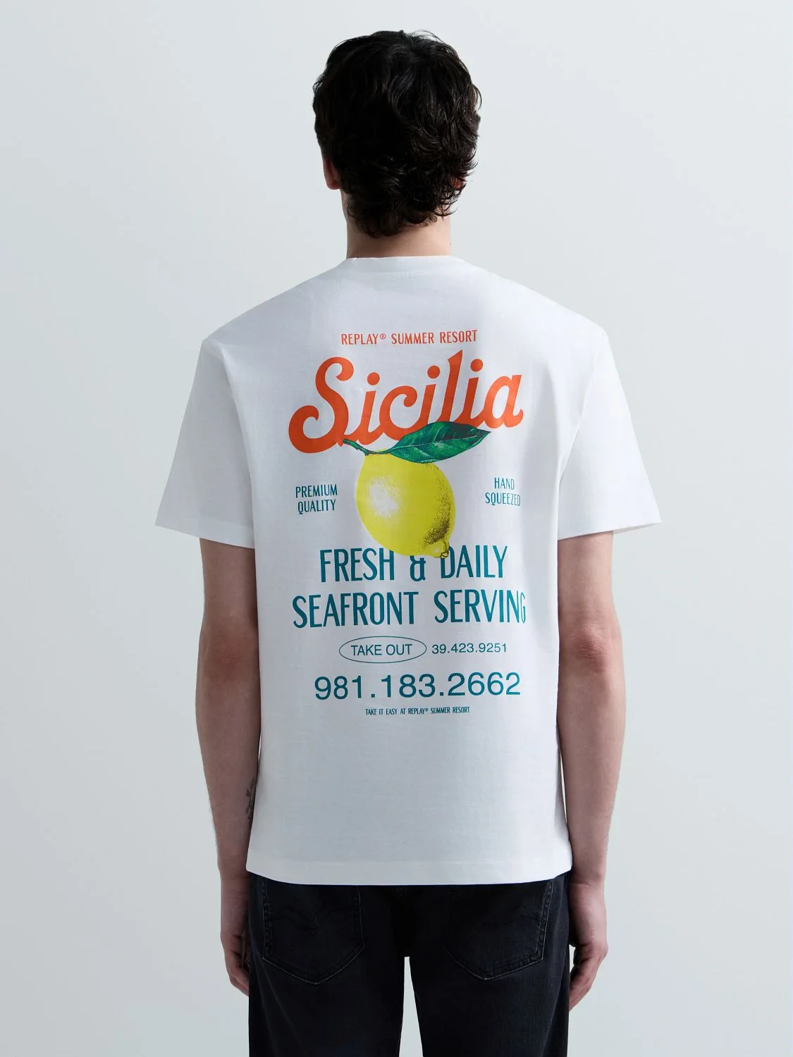 REPLAY – Natural White Relaxed-Fit T-Shirt with Sicily Print