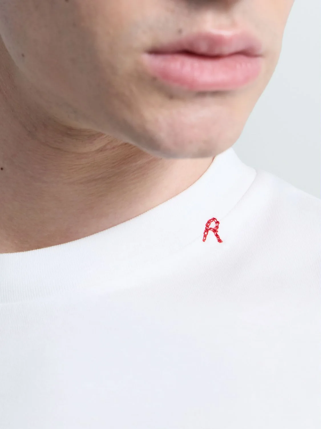 Relaxed-fit crew-neck T-shirt in heavy piece-dyed pure cotton jersey, guaranteeing softness and durability. This short-sleeved piece features a contrasting lettering logo print on the front and a Sicilian lettering and lemon print on the back. This style is finished with our iconic red R embroidery on neck.