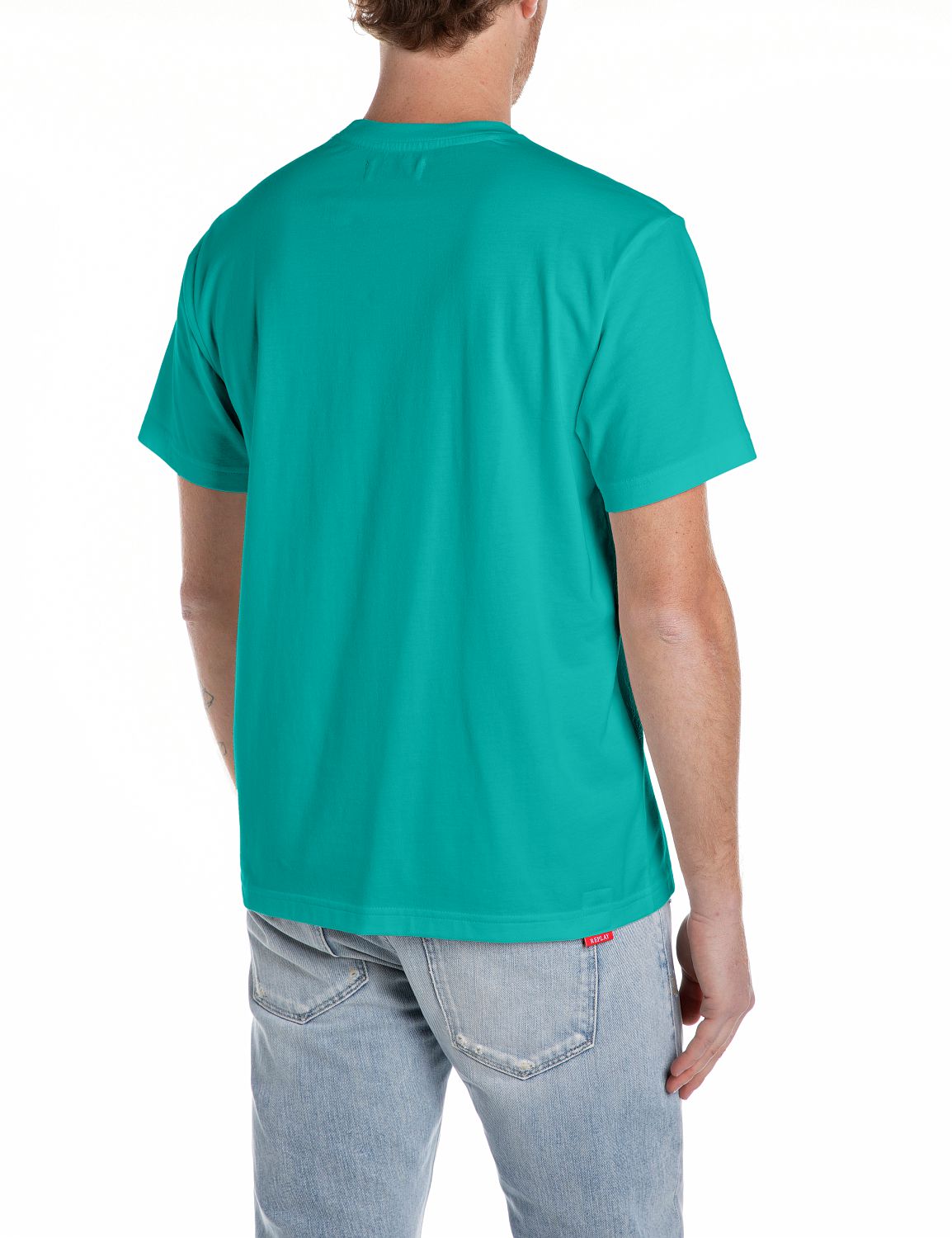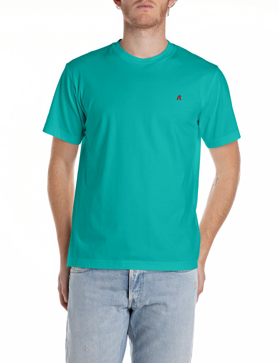 REPLAY – Turquoise Jersey T-Shirt with Red R Logo.