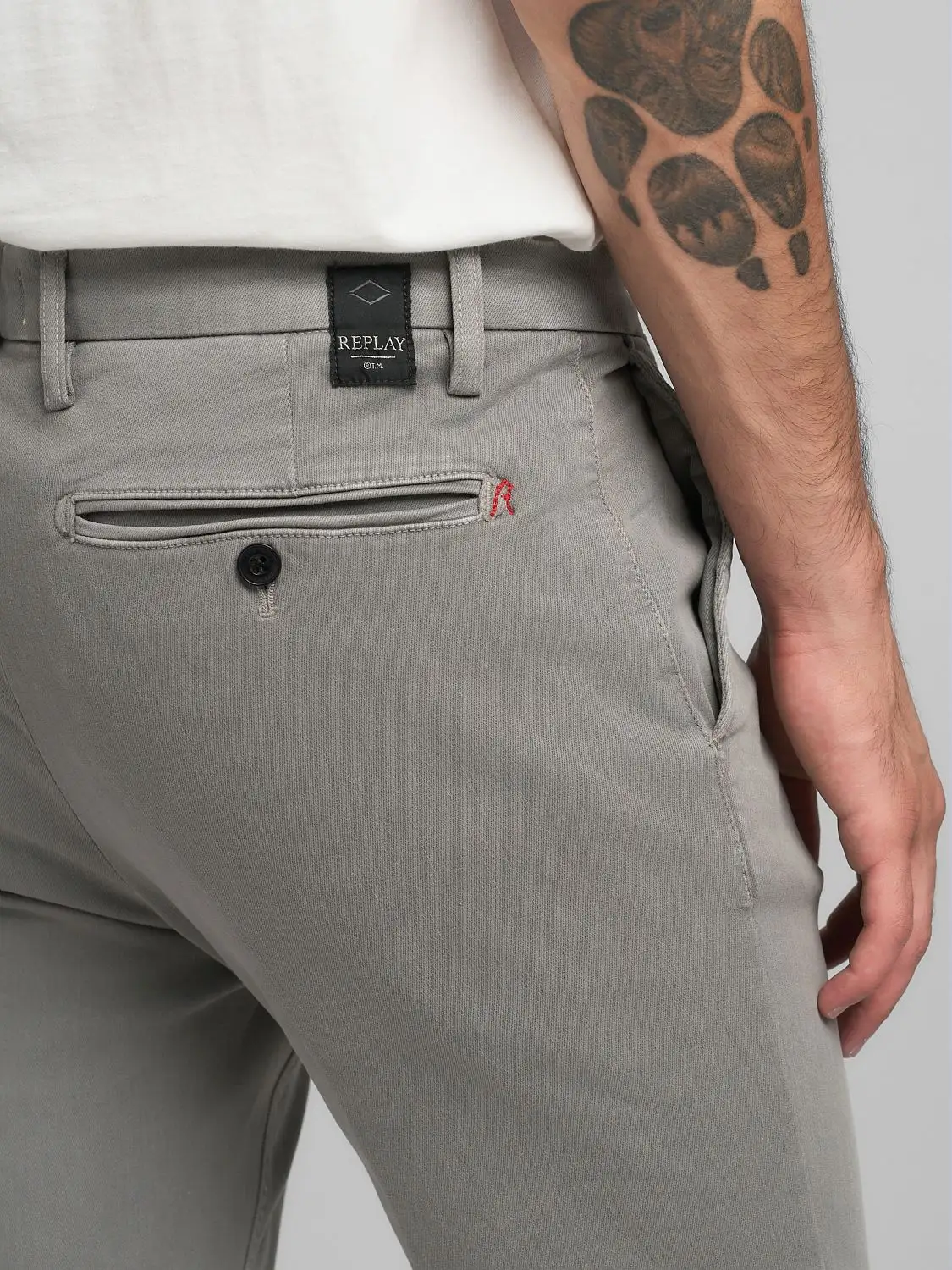 REPLAY – Warm Grey Zeumar Slim-Fit Chino Jeans