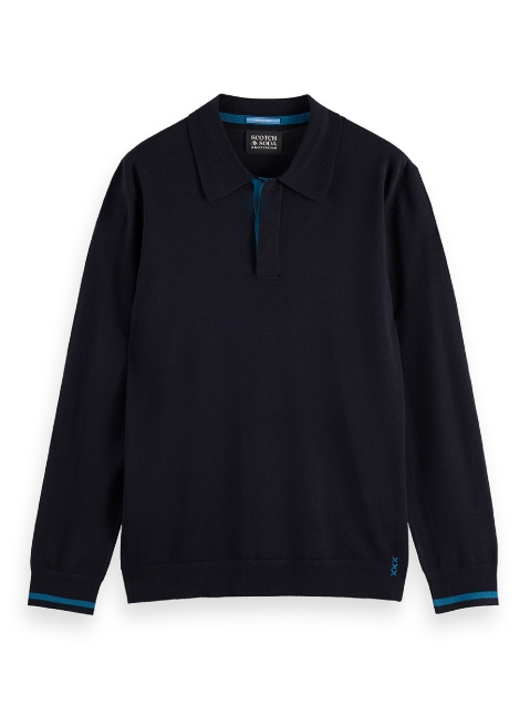 SCOTCH & SODA – Anthracite Ecovero Blend Knitted Long Sleeve Polo