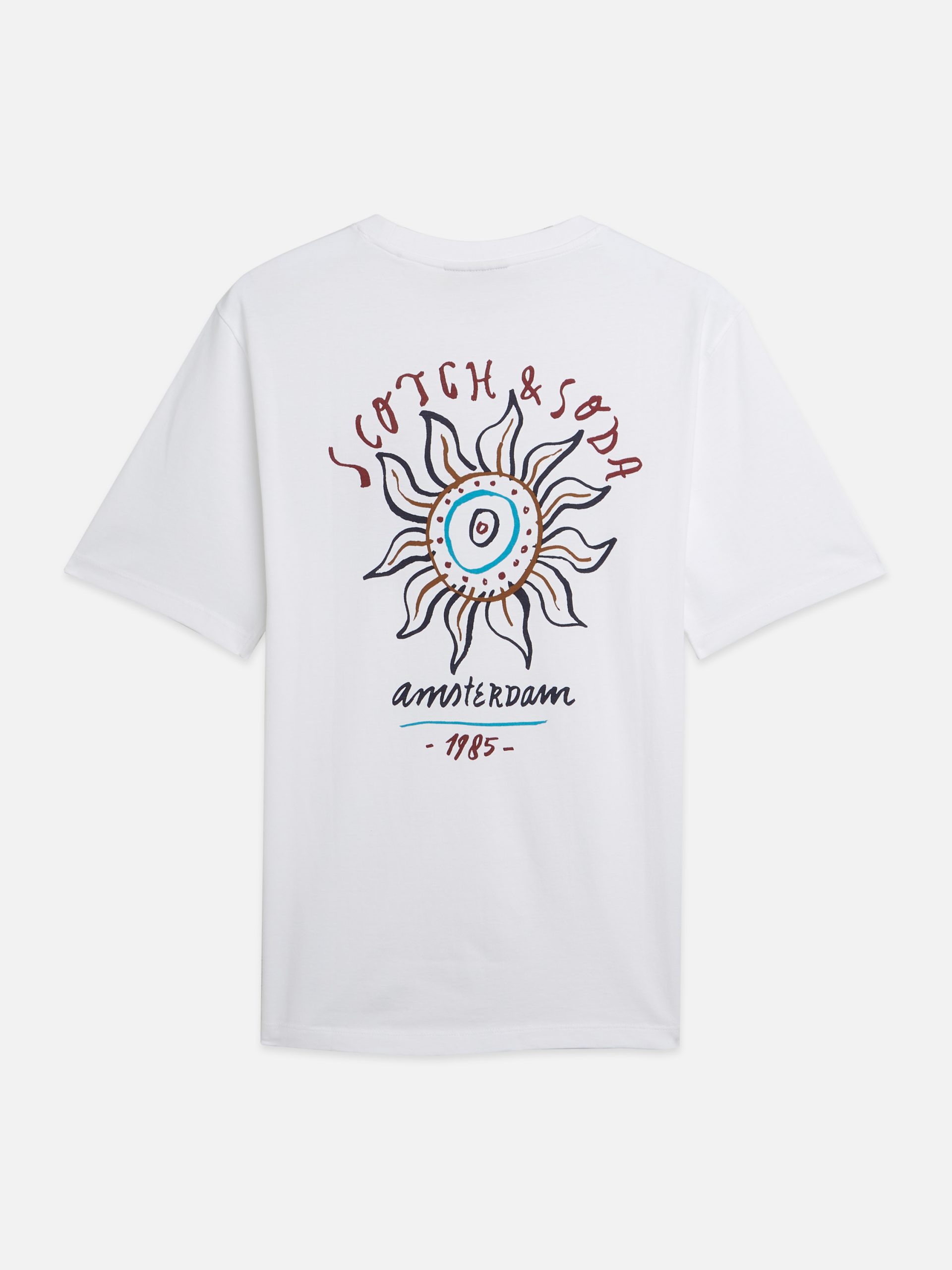 SCOTCH & SODA – Bright White Front and Back Artwork Regular Fit T-Shirt