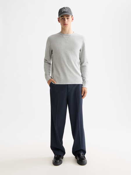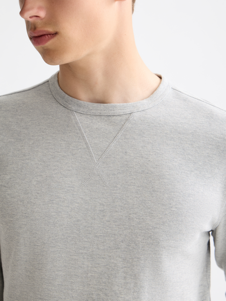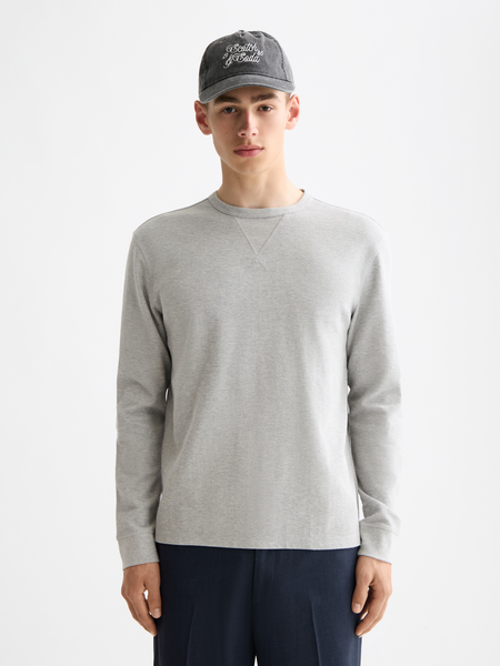 SCOTCH & SODA – Mid Grey Melange Longsleeve Waffle T-Shirt.