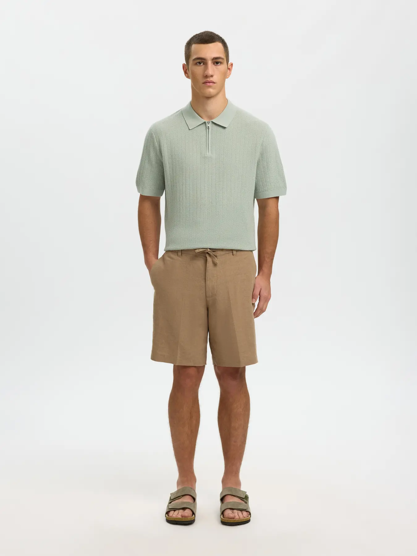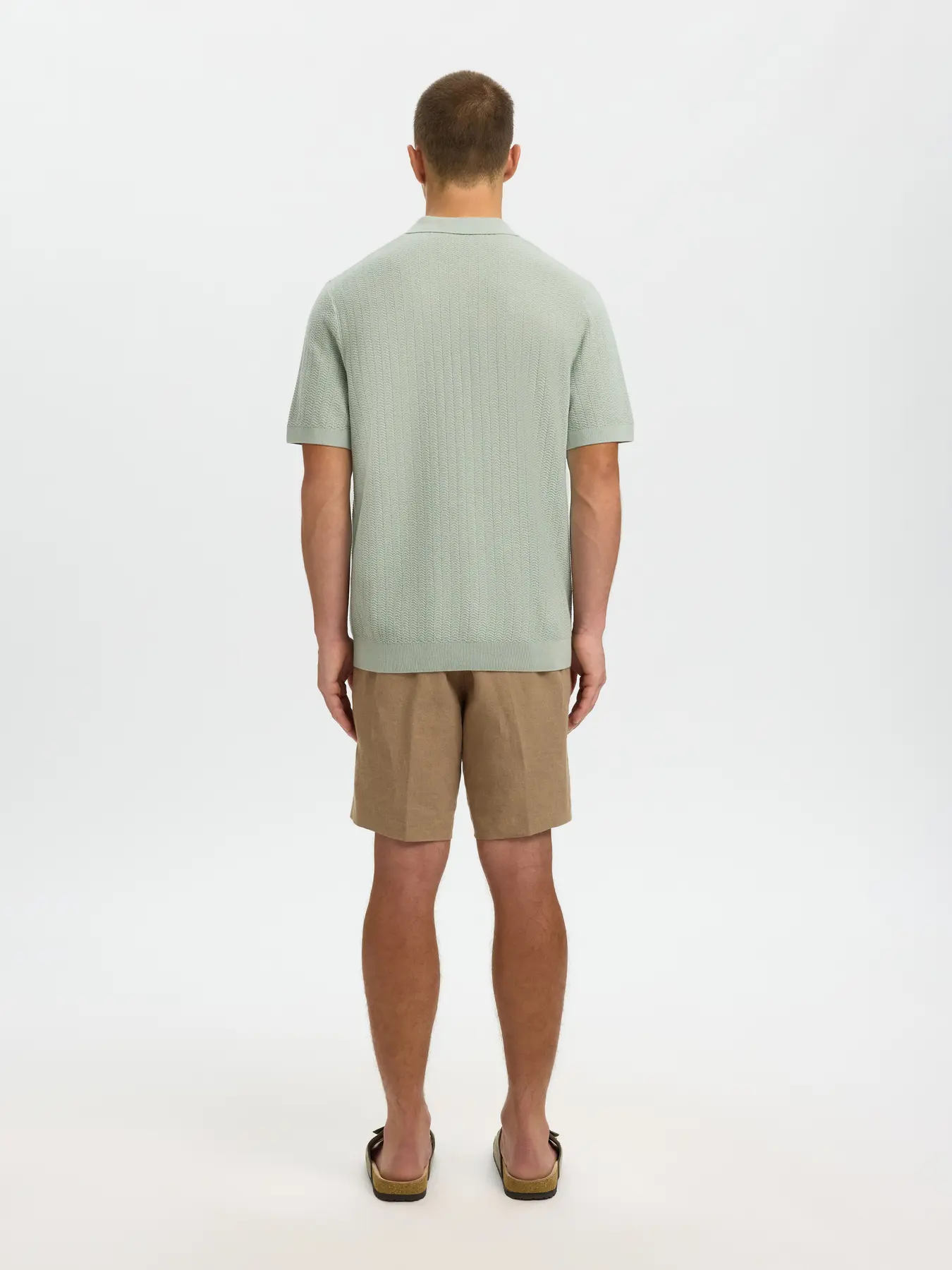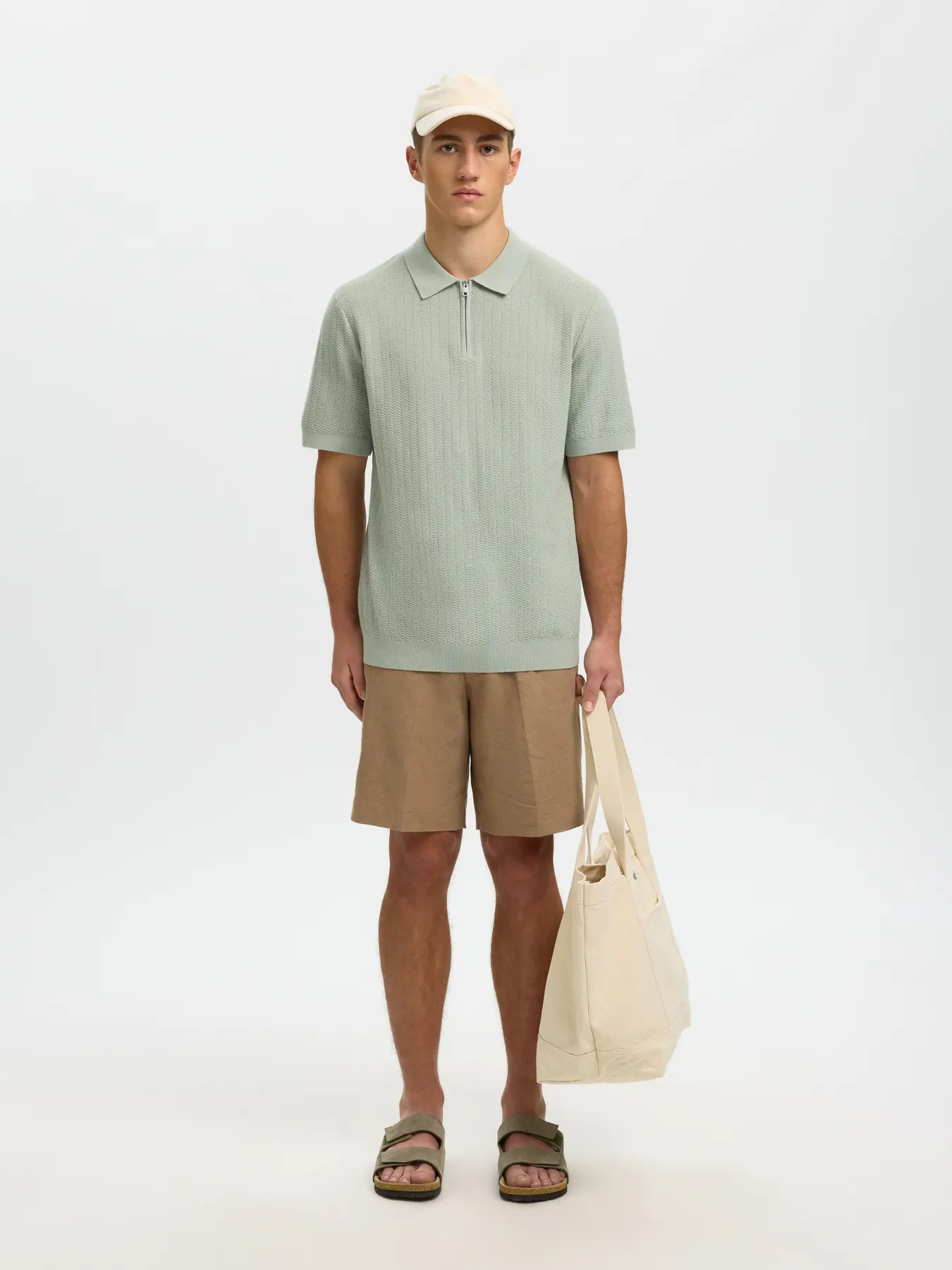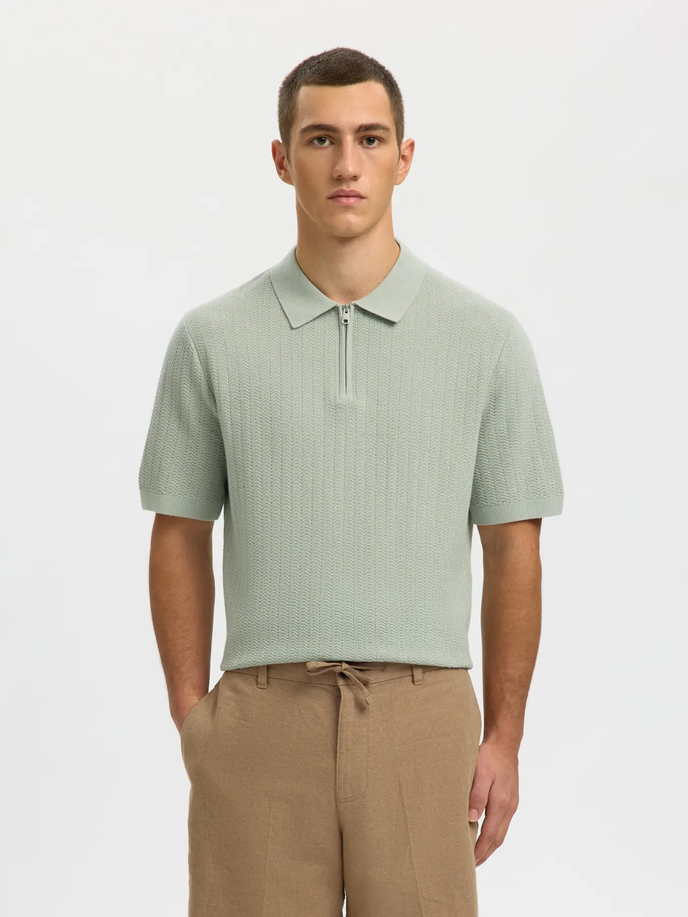 SELECTED – Aqua Grey Mcran Knit Structure Zip Polo