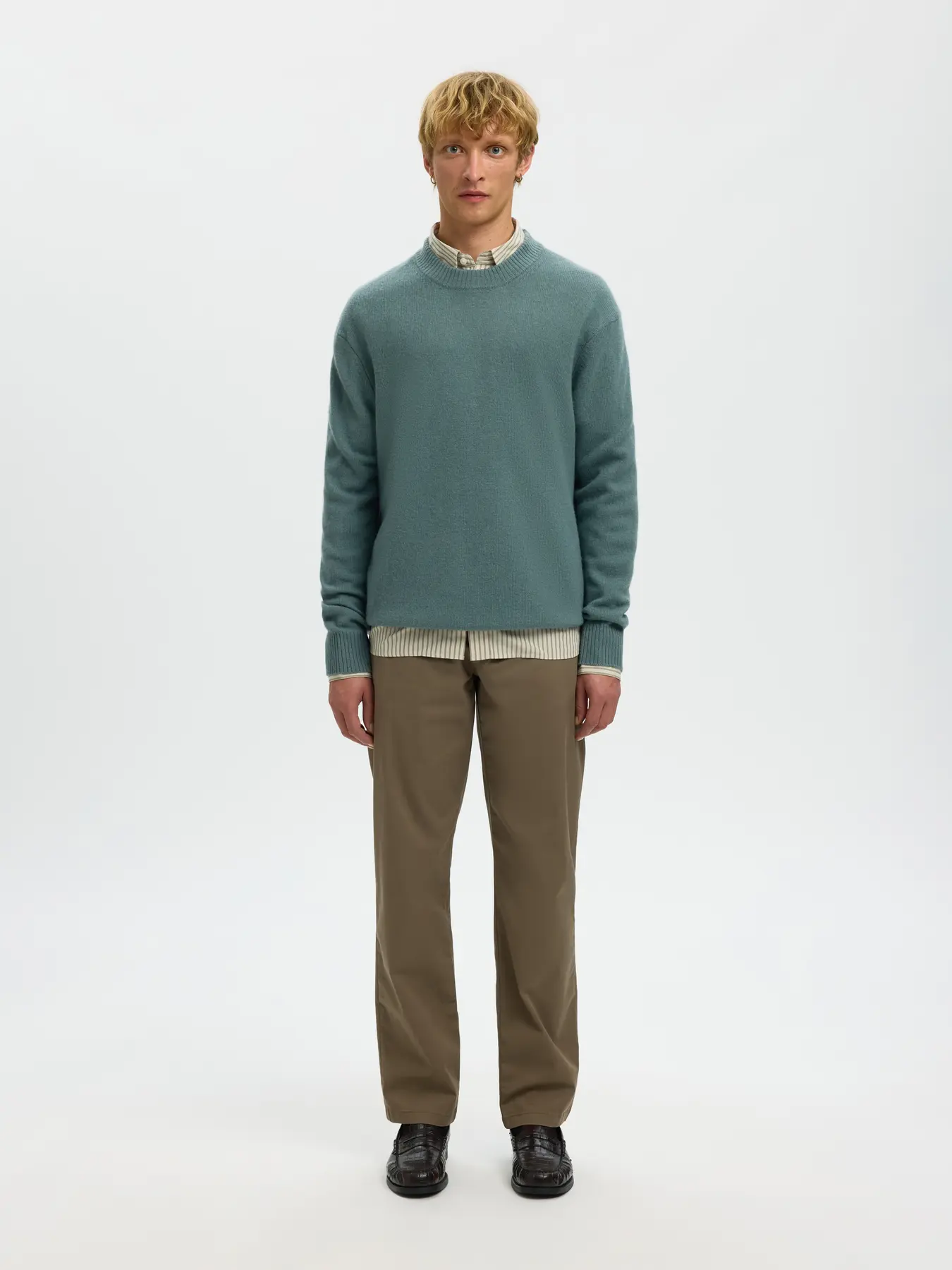SELECTED – Balsam Green Melange Reuben Knit Relaxed Crewneck