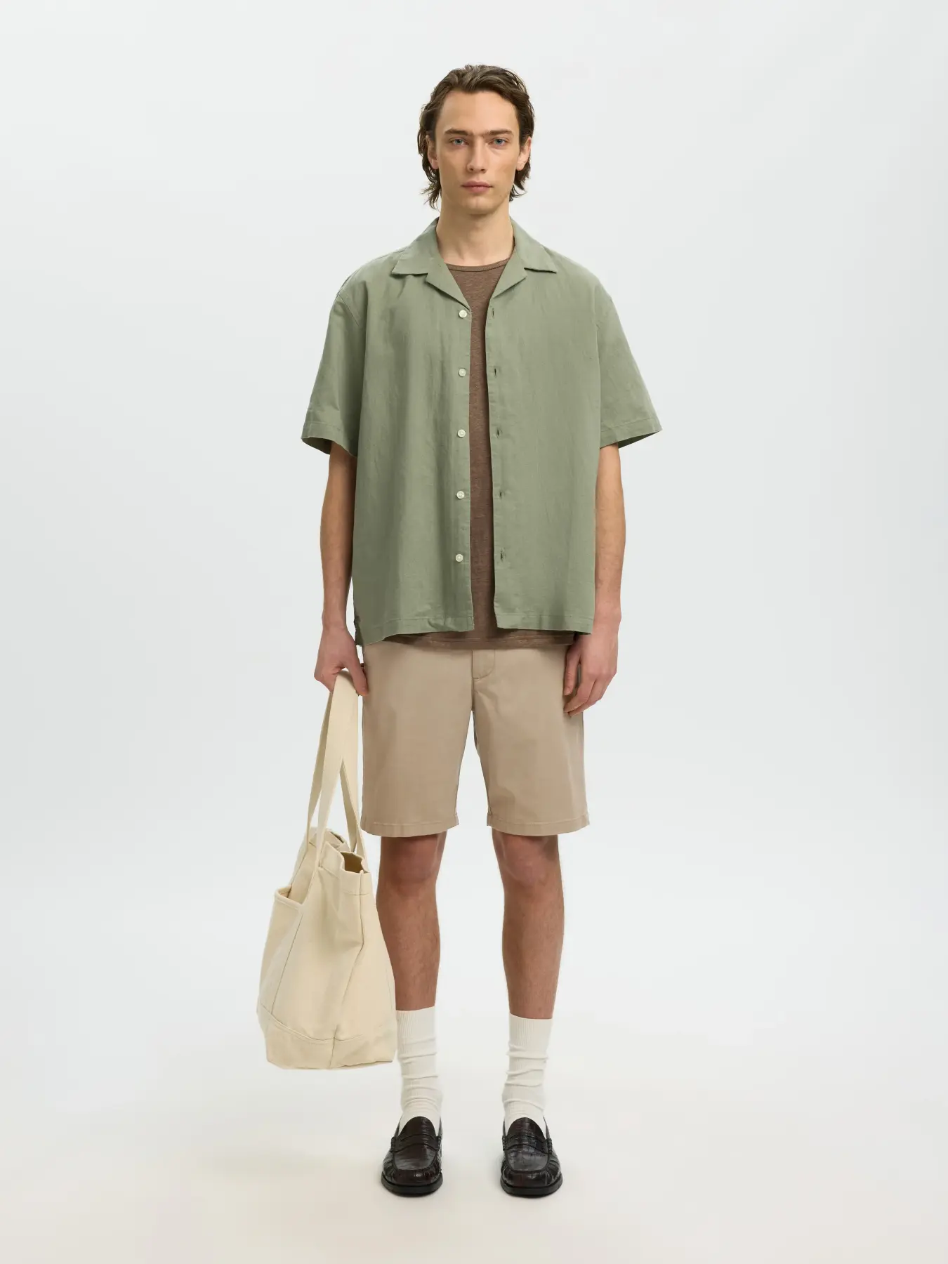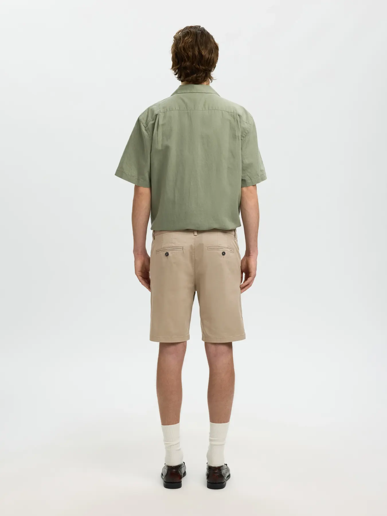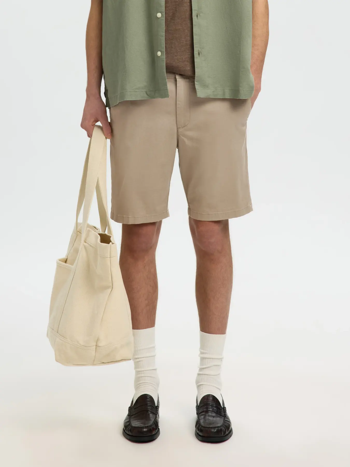 SELECTED – Greige Slim Miles Flex Shorts
