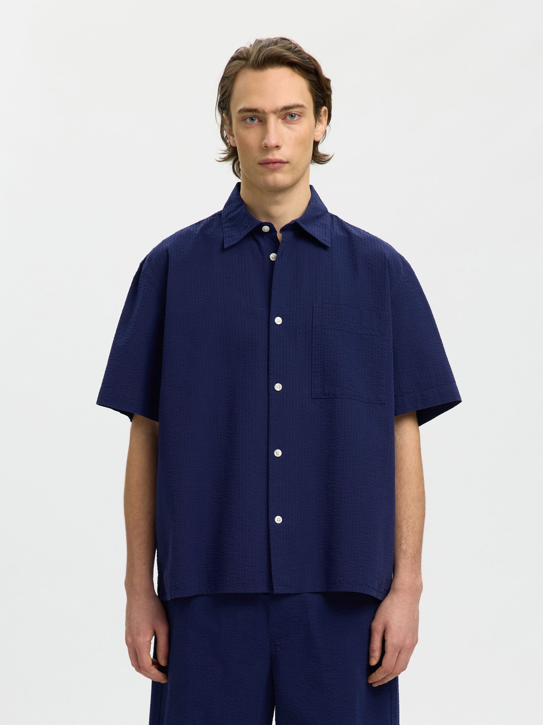 SELECTED – Ocean Cavern Short Sleeved Seersucker Shirt.