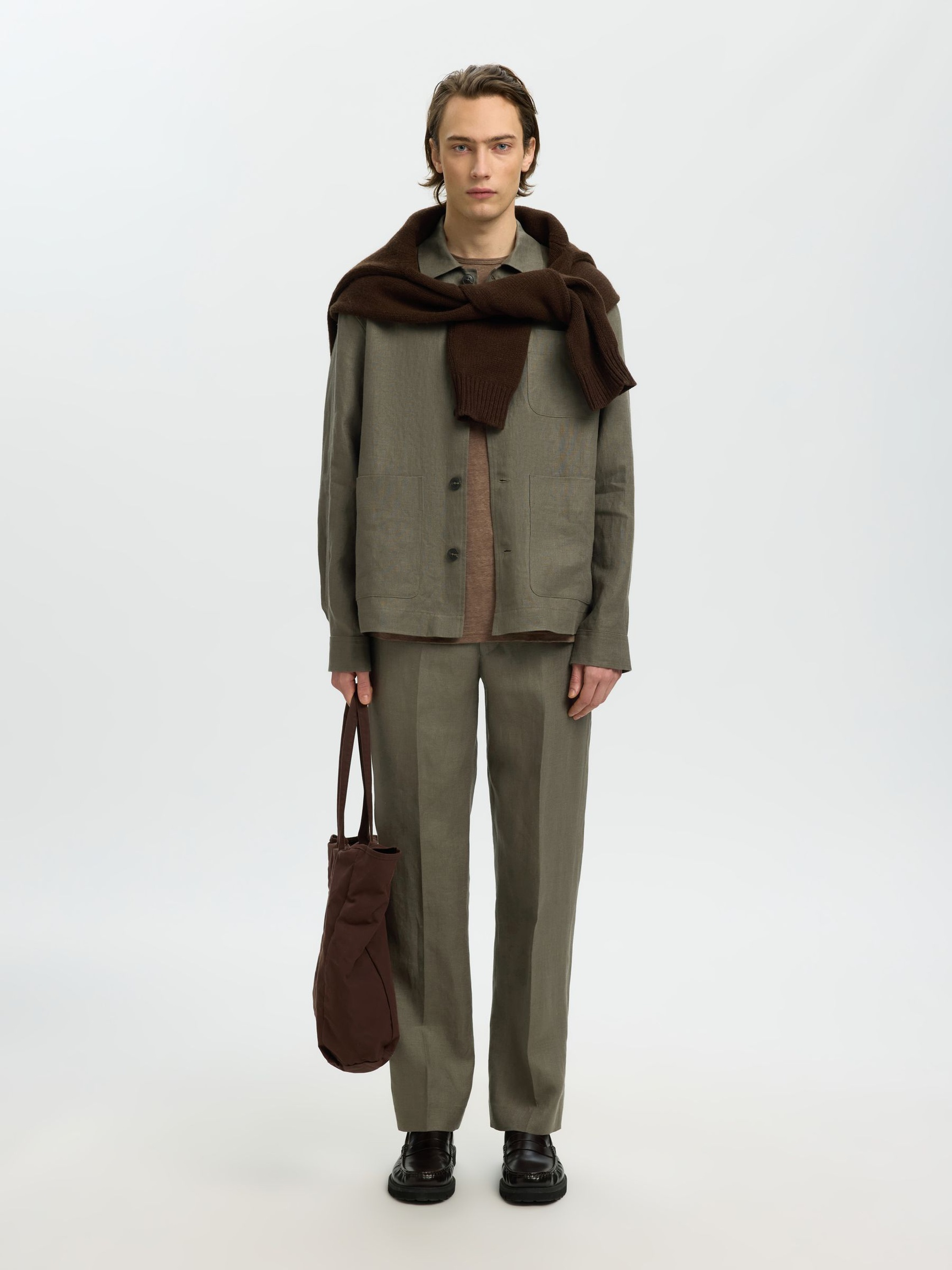 SELECTED – Olive Green Linen Overshirt.