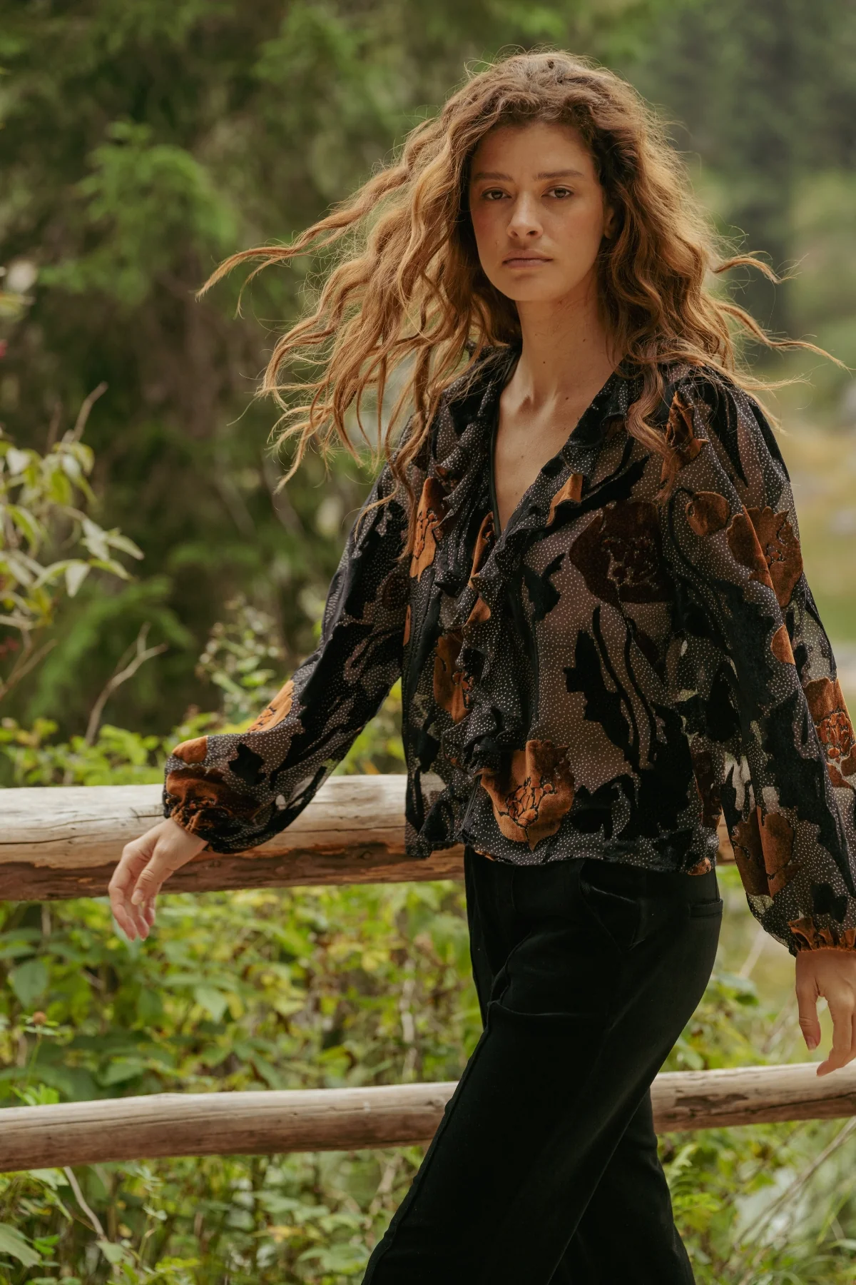 TRAFFIC PEOPLE – Black Burnout Frill Blouse
