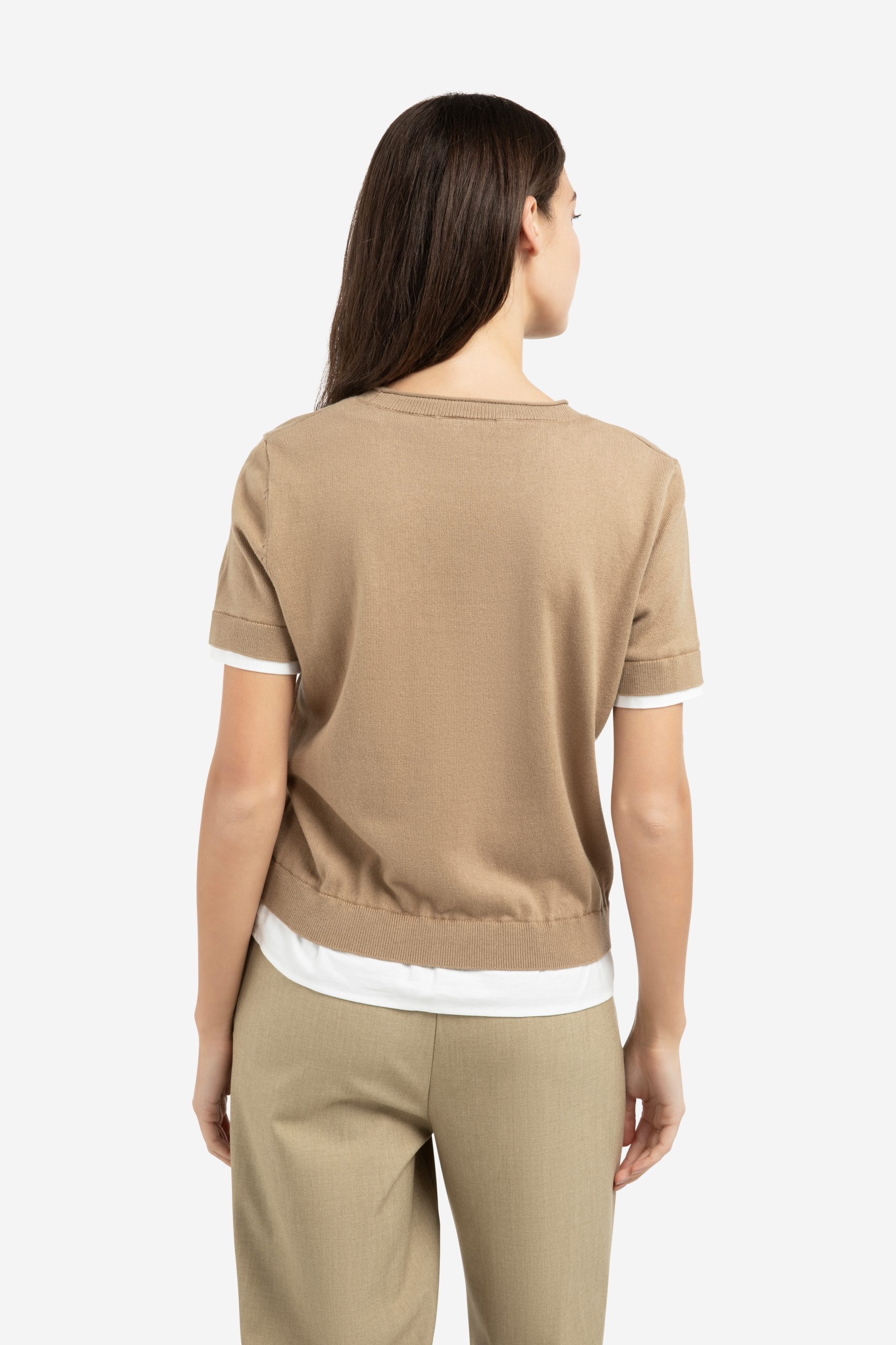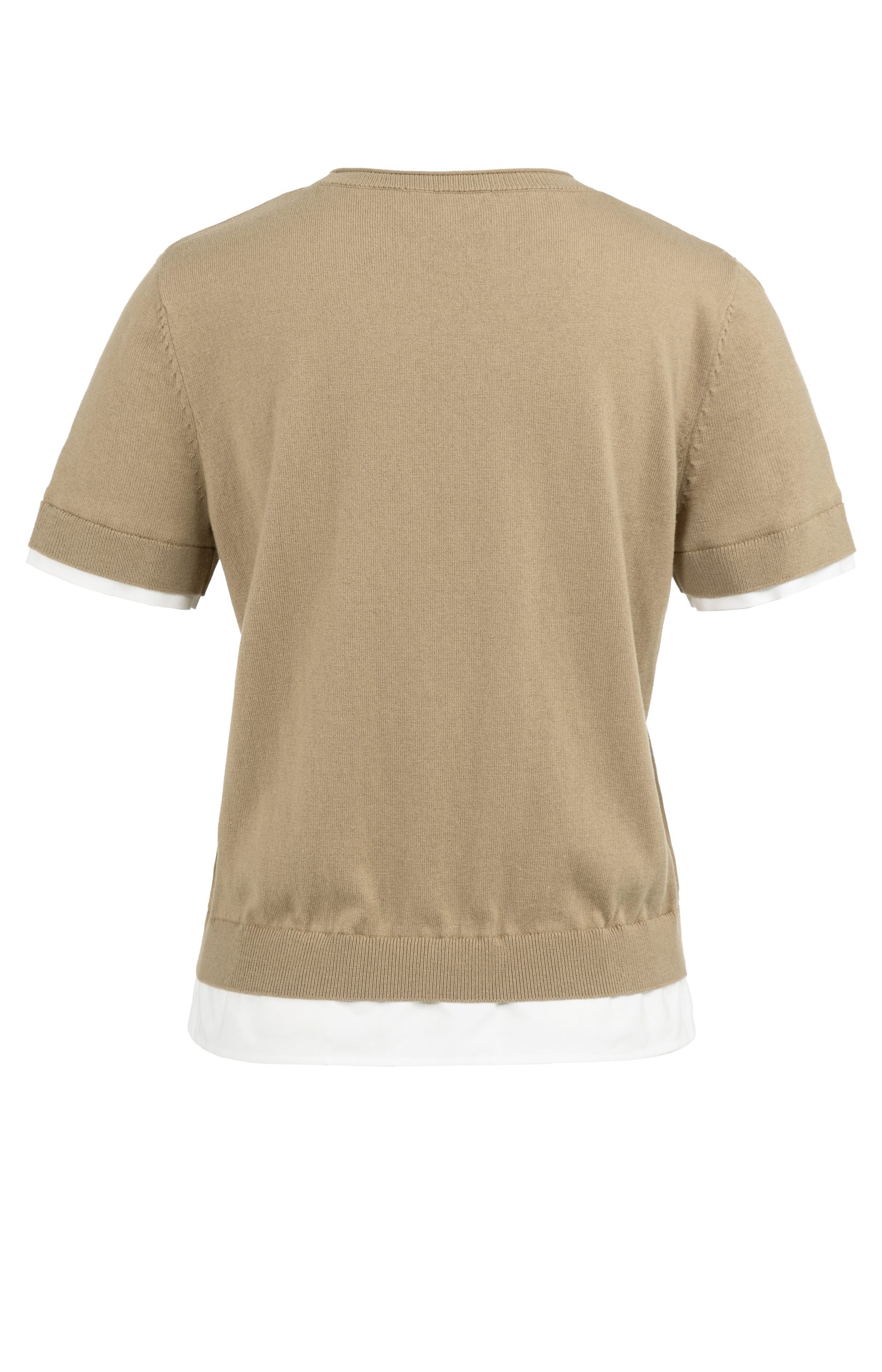 YAYA – Khaki Green Textured Knitted Sweater With Short Sleeves