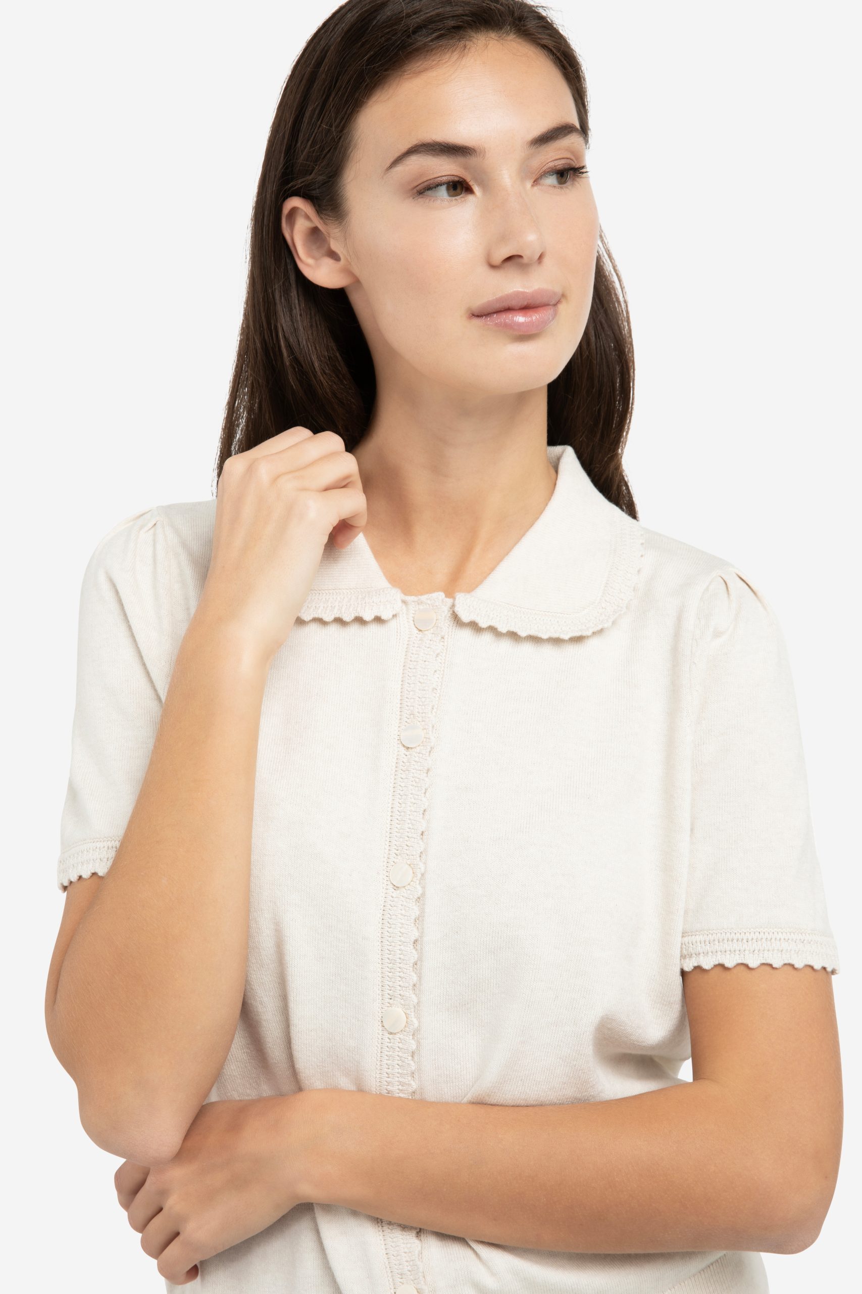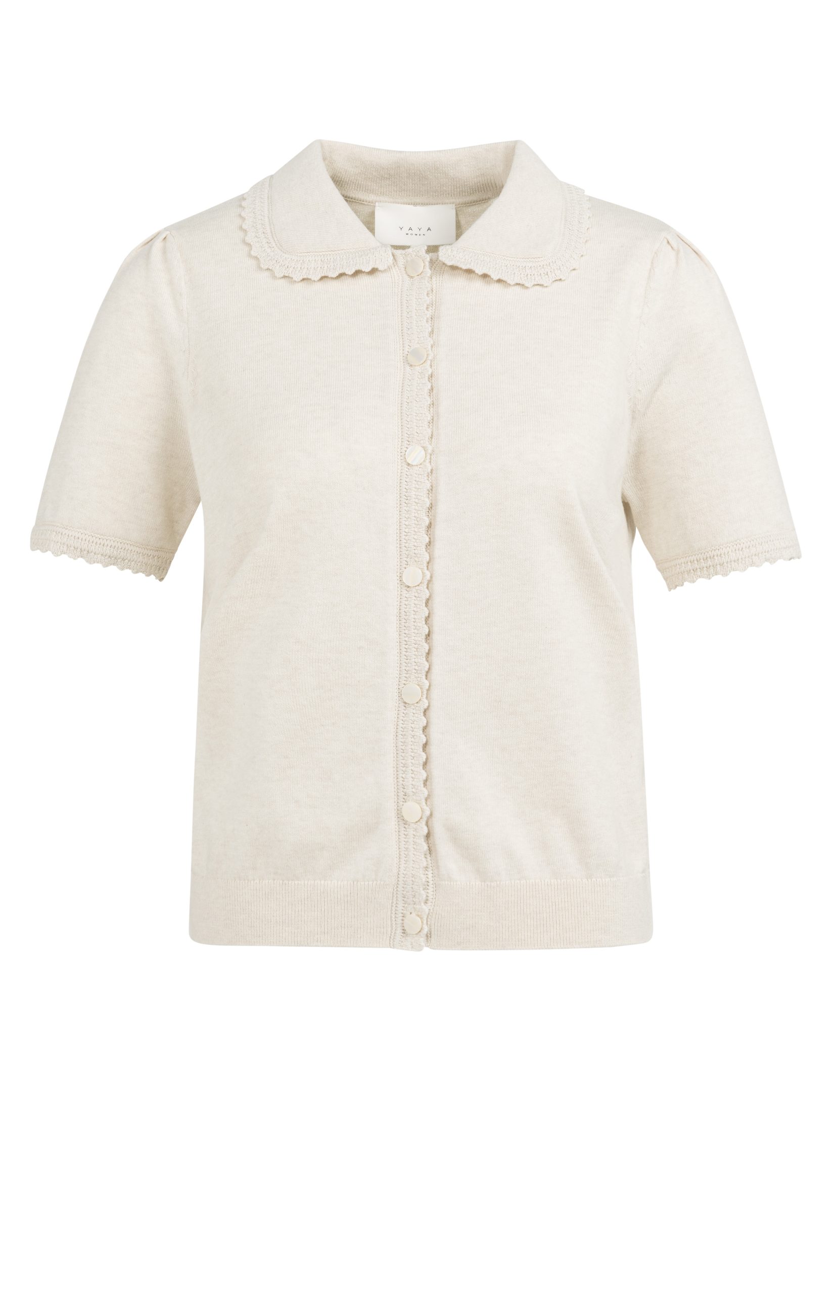YAYA – Kit Beige Melange Knitted Cardigan With Short Sleeves And Buttons