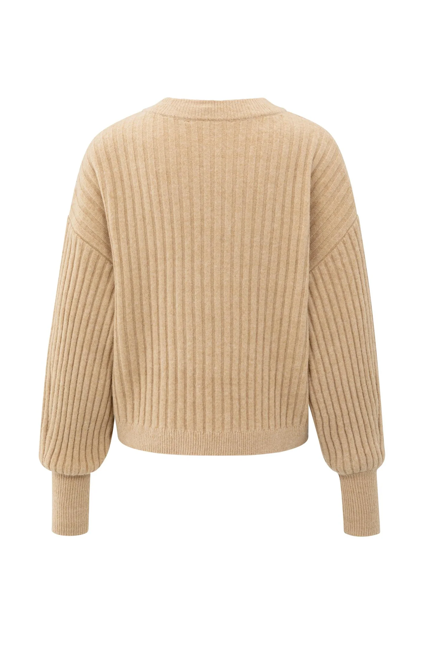YAYA – Light Camel Ribbed Sweater With Round Neck And Long Sleeves