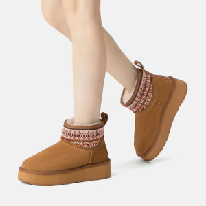 EVERAU – Chestnut Plover Woven Ankle Platform Boots