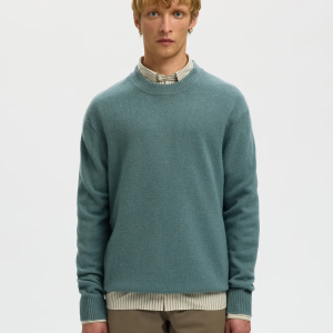 SELECTED – Balsam Green Melange Reuben Knit Relaxed Crewneck