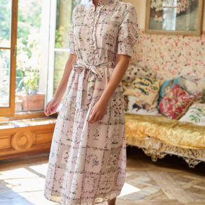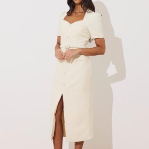 THE 8TH SIGN – Cream Harriet Tweed Button Front Belted Midi