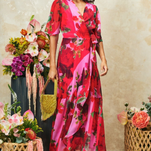 THE 8TH SIGN – Fuscia Pink Eleni Drape Midi Dress