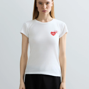 REPLAY – Natural White Fitted T-Shirt with Key Ring Print