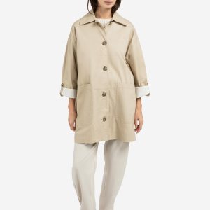 YAYA – Sandstone Beige Oversized Cotton Jacket With Buttons And Patch Pockets