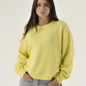 YAYA – Khaki Green Textured Knitted Sweater With Short Sleeves