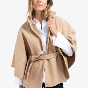 YAYA – Light Camel Melange Soft Woven Poncho With Collar And Belt
