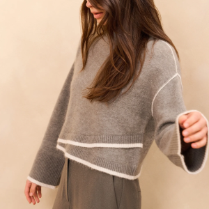 YAYA – Taupe Grey Melange Knitted Sweater With Contrasting Lines
