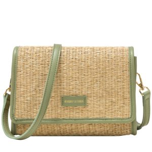 EVERY OTHER – Olive Straw Flap Over Cross Body Bag