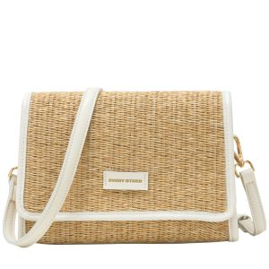 EVERY OTHER – White Straw Flap Over Cross Body Bag