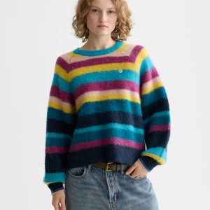 SCOTCH & SODA – El Cosmico Stripe Deep Lagoon Striped Oversized Pullover
