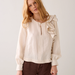 SUMMUM – Creme Linen-Blend Top with Ruffles